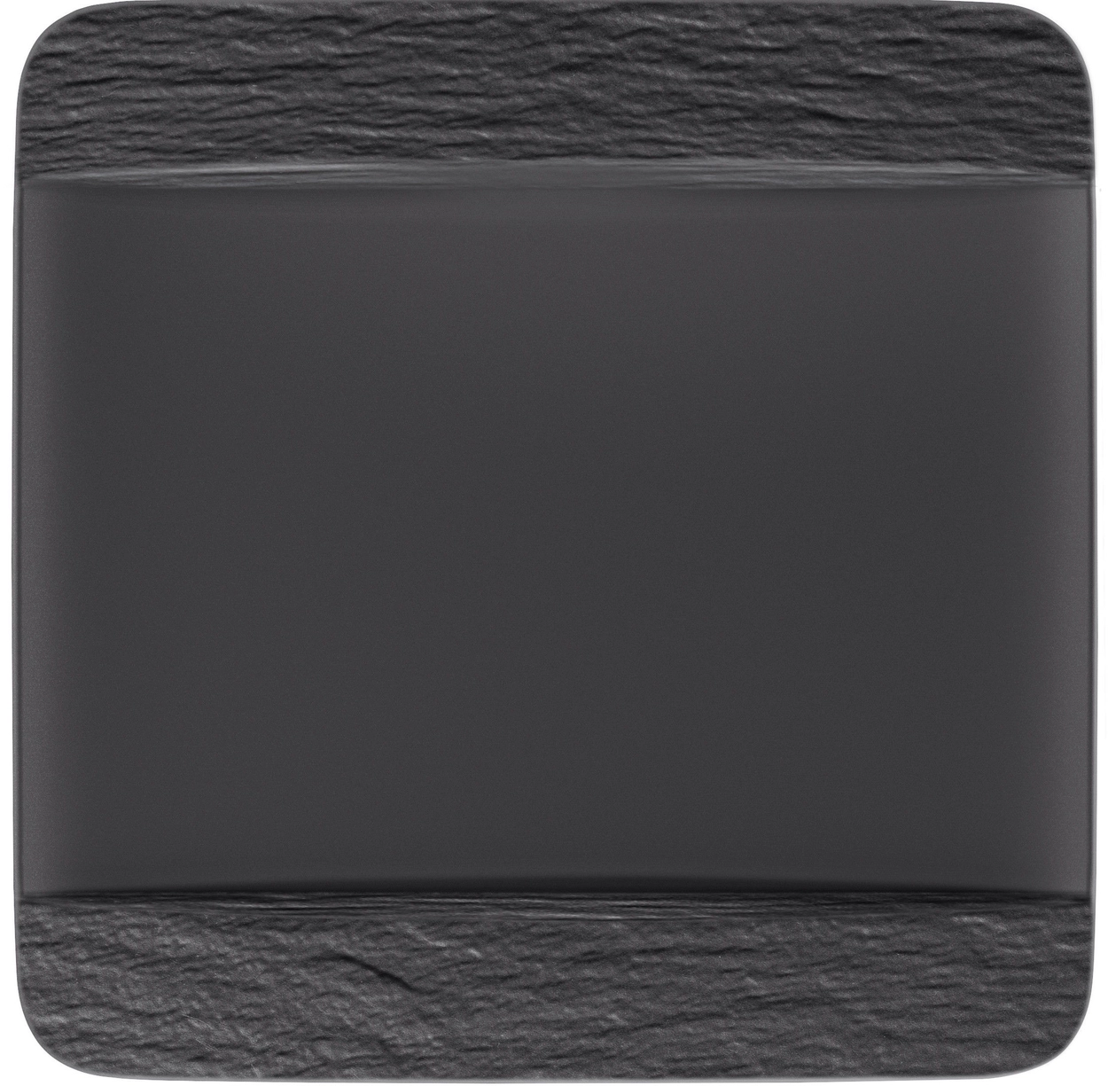 Talerz obiadowy kwadratowy z kolekcji Manufacture Rock. Ciemna odsłona kolekcji Manufacture Rock nawiązuje do struktury łupka zarówno w wyglądzie, jak i w dotyku. Struktura skały z delikatnym reliefem, nierównymi krawędziami oraz matowym wykończeniem sprawia, że każdy element prezentuje się wyjątkowo i nowocześnie. Surowy wygląd porcelany wyróżnia całą kolekcję na tle innych, klasycznych zastaw stołowych. Wyraziste powierzchnie nawiązują do obecnych trendów, a dzięki połączeniu z innymi elementami, takimi jak szklanki, sztućce oraz akcesoria możesz stworzyć własną, wyjątkową kolekcję. Uzyskaj zaskakujący efekt łącząc serię Manufacture Rock z białą lub miedzianą wersją.