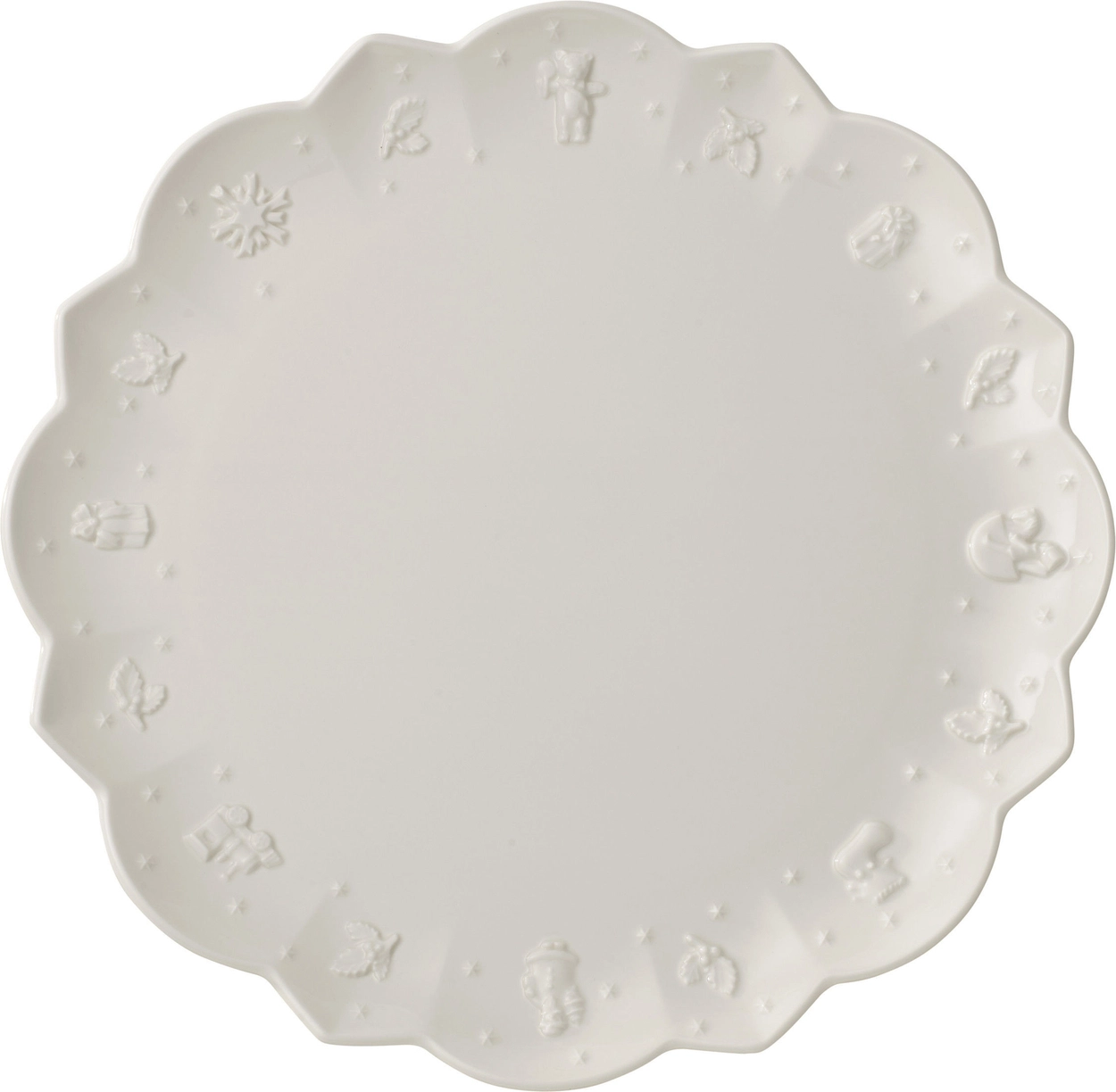 Talerz płaski z kolekcji Toy's Delight Royal Classic. Kolekcja świąteczna Toy's Delight Royal Classic jest subtelną, czysto białą wersją popularnego Toy's Delight. Posiada pofalowany brzeg oraz wypukłe elementy, które kojarzą się z przyjemną, bożonarodzeniową atmosferą - choinki, gwiazdki czy prezenty. Nowe elementy pozwolą Ci stworzyć kompletną, elegancką kolekcję na świąteczny stół - dzbanki, miski, etażerki, cukiernice i inne elementy. Wszystko wygląda zachwycająco, a jednocześnie bardzo klasycznie. Ciesz się poranną kawą czy wspólnym obiadem w rodzinnym gronie przy pięknej porcelanie marki Villeroy&Boch. Połącz obie wersje Toy's i wprowadź wyjątkową, radosną atmosferę do swojego wnętrza na tegoroczne święta Bożego Narodzenia.