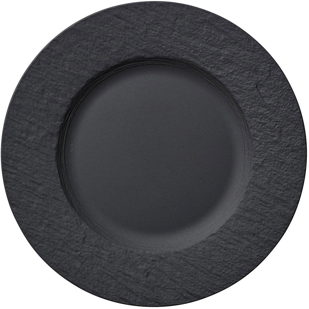Talerz sałatkowy z kolekcji Manufacture Rock. Ciemna odsłona kolekcji Manufacture Rock nawiązuje do struktury łupka zarówno w wyglądzie, jak i w dotyku. Struktura skały z delikatnym reliefem, nierównymi krawędziami oraz matowym wykończeniem sprawia, że każdy element prezentuje się wyjątkowo i nowocześnie. Surowy wygląd porcelany wyróżnia całą kolekcję na tle innych, klasycznych zastaw stołowych. Wyraziste powierzchnie nawiązują do obecnych trendów, a dzięki połączeniu z innymi elementami, takimi jak szklanki, sztućce oraz akcesoria możesz stworzyć własną, wyjątkową kolekcję. Uzyskaj zaskakujący efekt łącząc serię Manufacture Rock z białą lub miedzianą wersją.