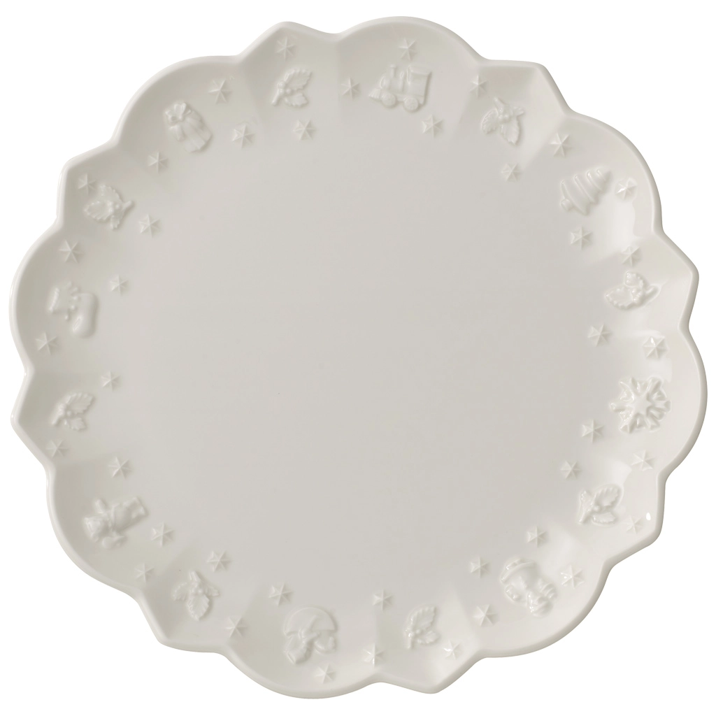 Talerz sałatkowy z kolekcji Toy's Delight Royal Classic. Kolekcja świąteczna Toy's Delight Royal Classic jest subtelną, czysto białą wersją popularnego Toy's Delight. Posiada pofalowany brzeg oraz wypukłe elementy, które kojarzą się z przyjemną, bożonarodzeniową atmosferą - choinki, gwiazdki czy prezenty. Nowe elementy pozwolą Ci stworzyć kompletną, elegancką kolekcję na świąteczny stół - dzbanki, miski, etażerki, cukiernice i inne elementy. Wszystko wygląda zachwycająco, a jednocześnie bardzo klasycznie. Ciesz się poranną kawą czy wspólnym obiadem w rodzinnym gronie przy pięknej porcelanie marki Villeroy&Boch. Połącz obie wersje Toy's i wprowadź wyjątkową, radosną atmosferę do swojego wnętrza na tegoroczne święta Bożego Narodzenia.