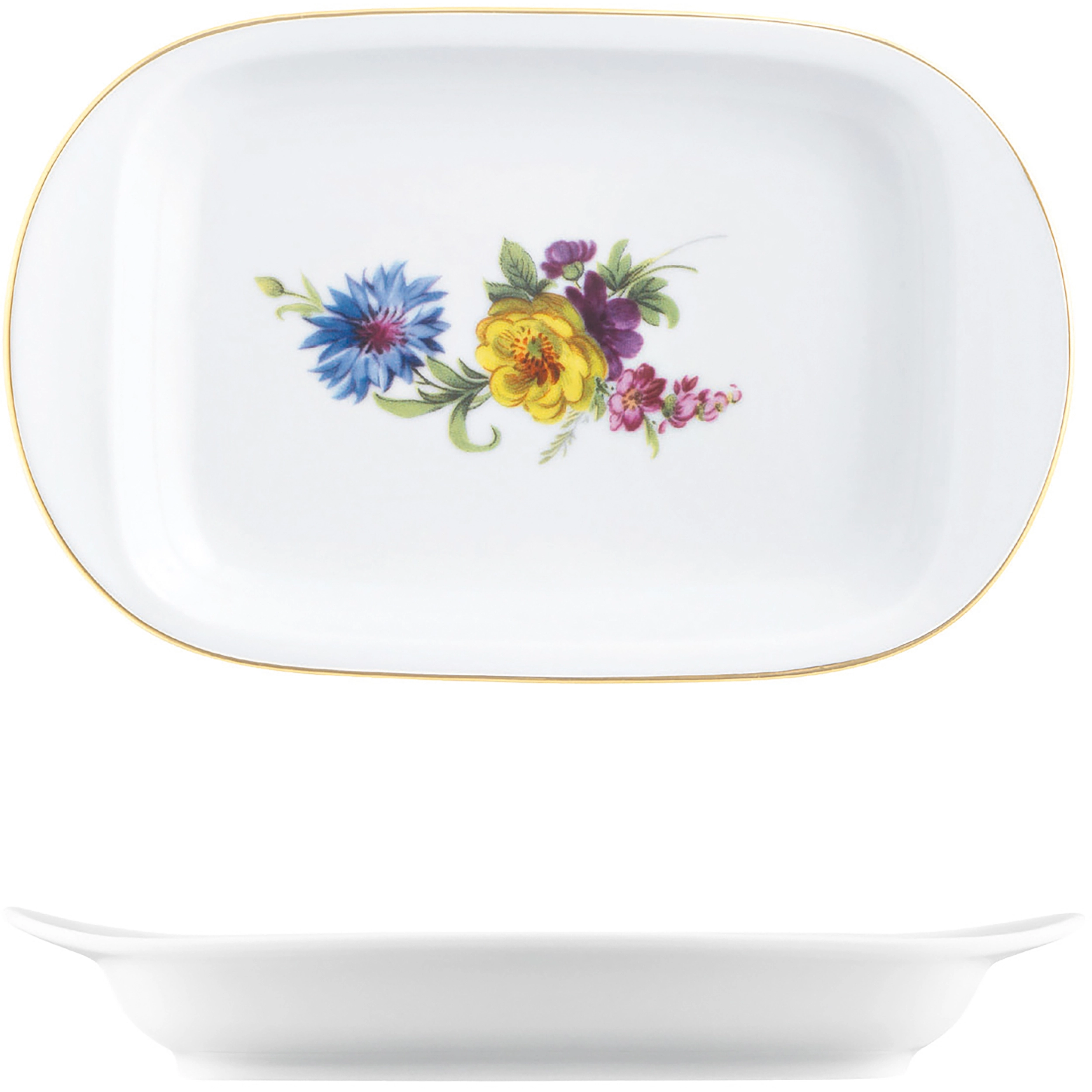 - Prostokątny talerzyk na masło 17cm z kolekcji ALT FÜRSTENBERG BUNTE BLUMEN