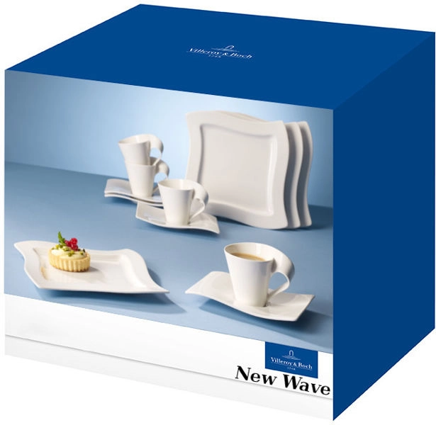 New Wave to kultowa kolekcja Villeroy Boch, którą zaprezentował po raz pierwszy w 2001 roku, a jego sukces trwa do dziś. W serii New Wave został opracowany zbiór naczyń silnie kontrastujących z klasycznym okrągłym kształtem naczyń. Zamiast tego, naczynia, talerze, kubki i misy mają szczególny wygląd fali. Bardzo przypomina obraz flagi falującej na wietrze. Specjalna konstrukcja daje wszystkim produktom serii wyjątkowy i nowoczesny charakter. Naczynia wykonane są z najwyższej klasy porcelany. Są odporne na wstrząsy i promieniują jasną bielą. Ponadto charakteryzują się wysoką wytrzymałością krawędzi. Zestaw Villeroy Boch New Wave produkowany jest za pomocą specjalnie zaprojektowanego procesu odlewu ciśnieniowego.
