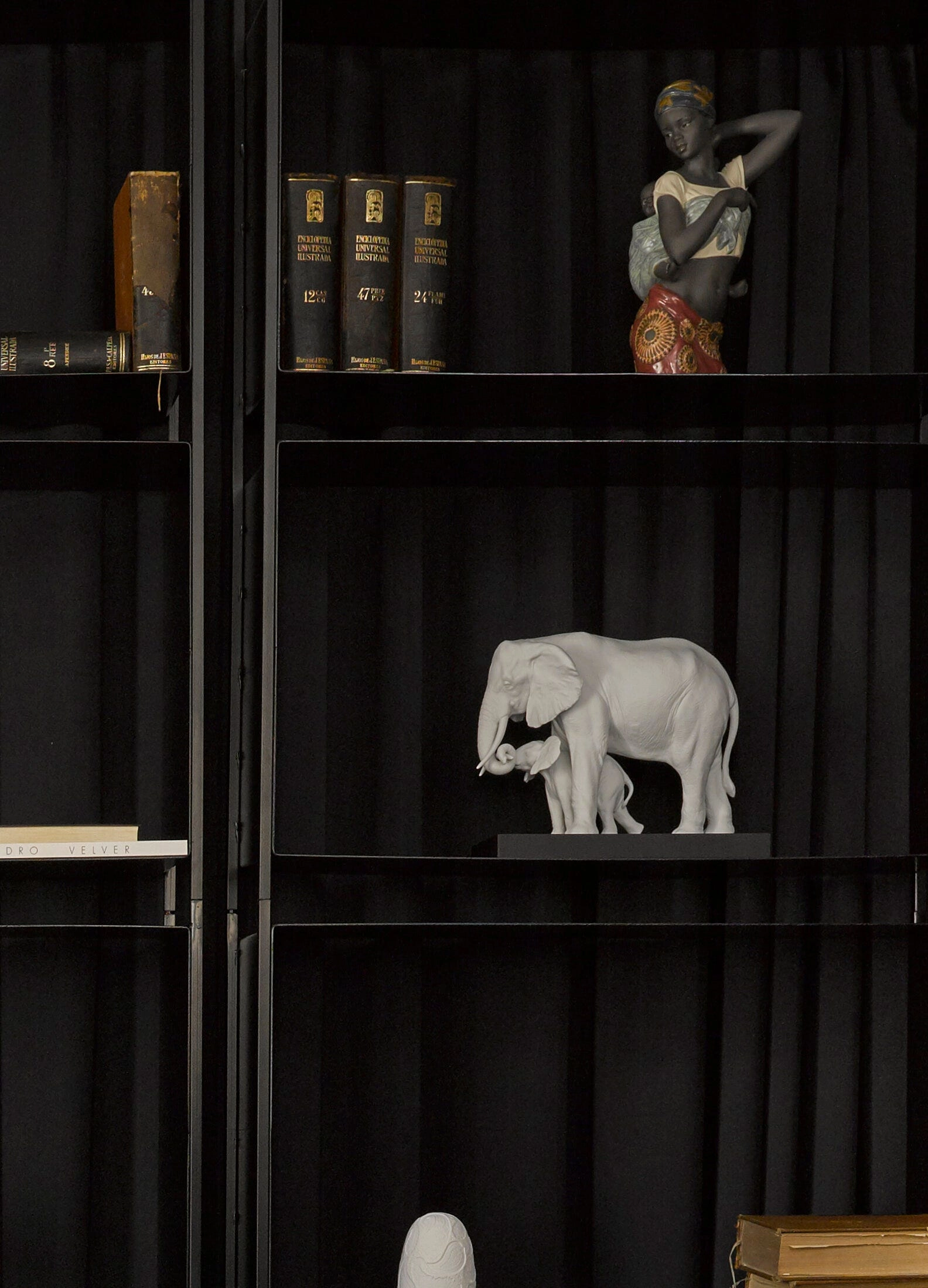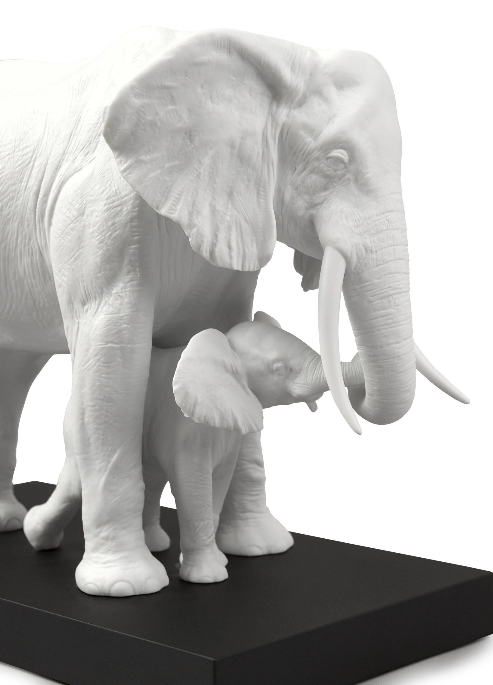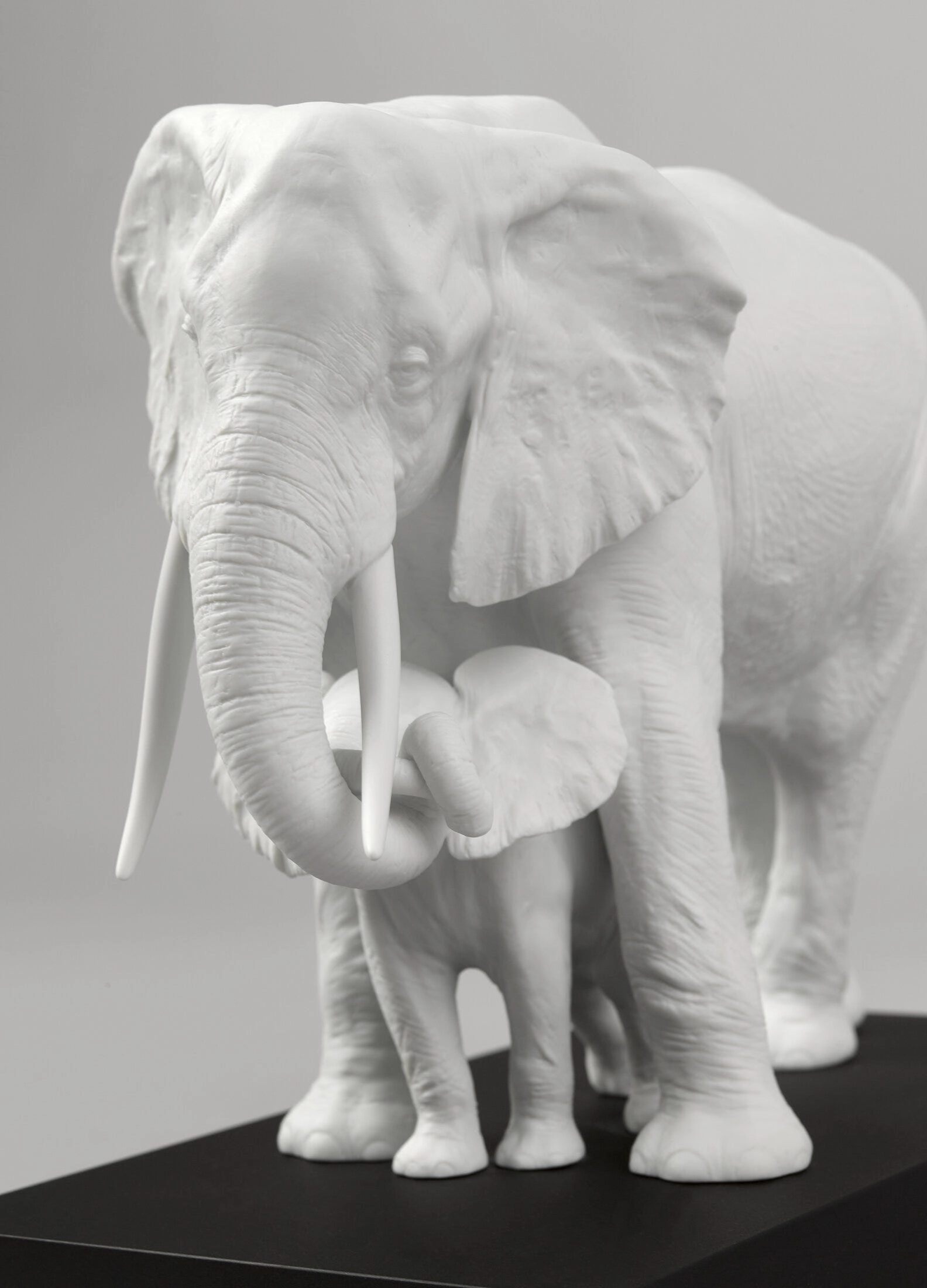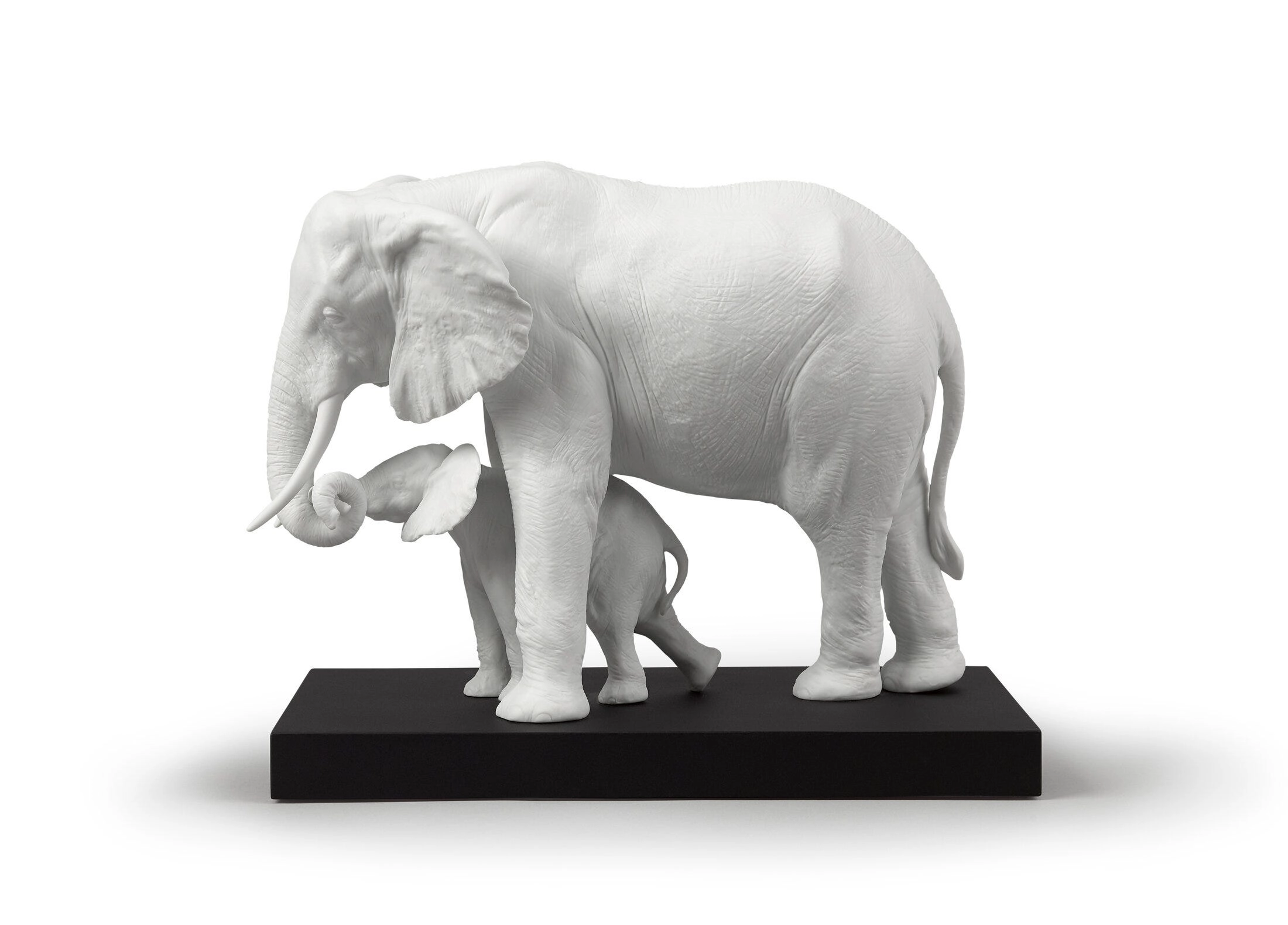 - Matowa porcelanowa figurka słonia spacerującego z małym słoniątkiem.