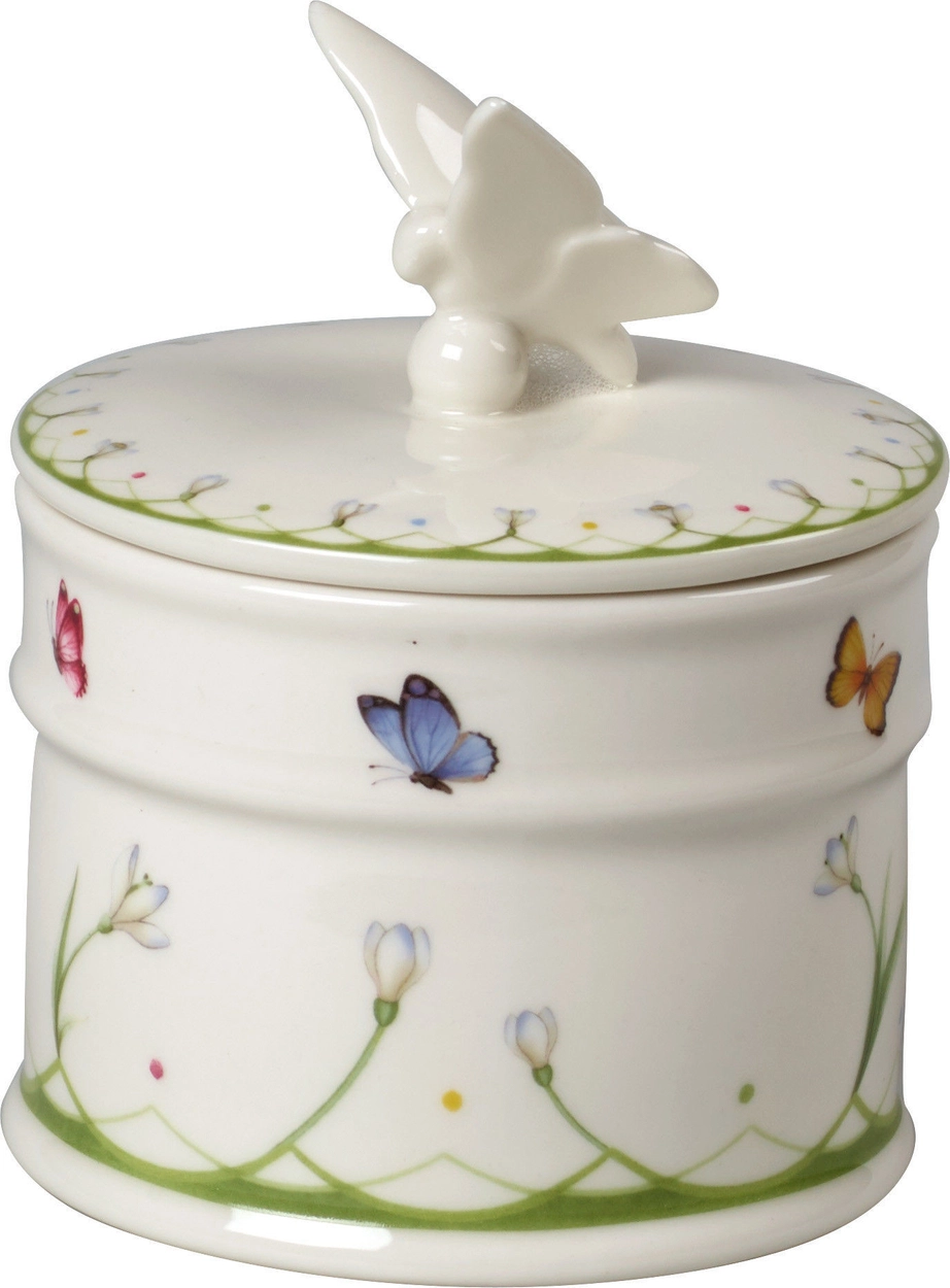 Pudełko porcelanowe z uszczelką z kolekcji Villeroy & Boch Colourful Spring. Kolekcja Colourful Spring to połączenie wiosennych motywów z wysokogatunkową porcelaną premium. Przebiśniegi i motyle to symbole zwiastujące nadchodzącą wiosnę, a razem z nią piękne, słoneczne dni. Zachwyci Ciebie i Twoich gości zarówno podczas wielkanocnego śniadania, jak i przez cały rok. Połącz elementy ze sobą różne elementy i stwórz własną, oryginalną dekorację. Doskonale będą się prezentować także w połączeniu z innymi kolekcjami, np. Colourful Life. Wprowadź lekkość i świeżość na swój stół i do swojego domu z porcelaną marki Villeroy&Boch!