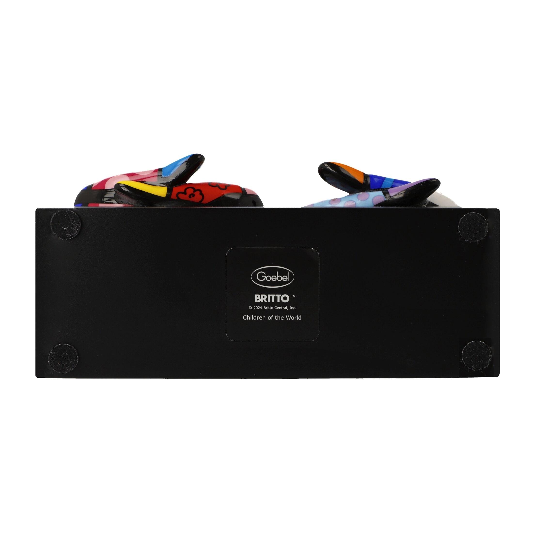 Romero Britto is much dedicated to the support of children all over the world. Having grown up in Recife, Brazil with 9 sibblings under hard social circumtances himself, he founded the Britto Foundation in 2007 in order to support various social, educational and creative projects. This figurine is an expression of his social commitment.