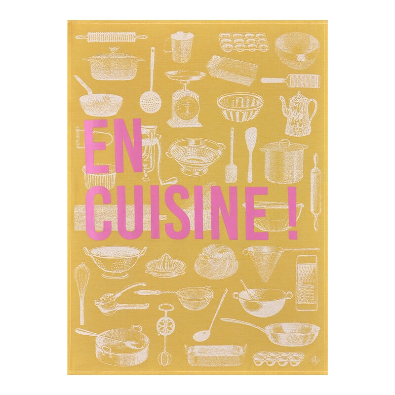 Bawełniany ręcznik herbaciany z kolekcji En Cuisine Yellow. Wykonane z długich włókien bawełny, które gwarantują najwyższą jakość i wytrzymałość materiału. Ściereczki od Le Jacquard Francais sprawią, że Twoja kuchnia nabierze współczesnego i kolorowego wyglądu. Kolekcja En Cuisine zachwyca ilustracjami kuchennych niezbędników i efektowną kolorystyką.