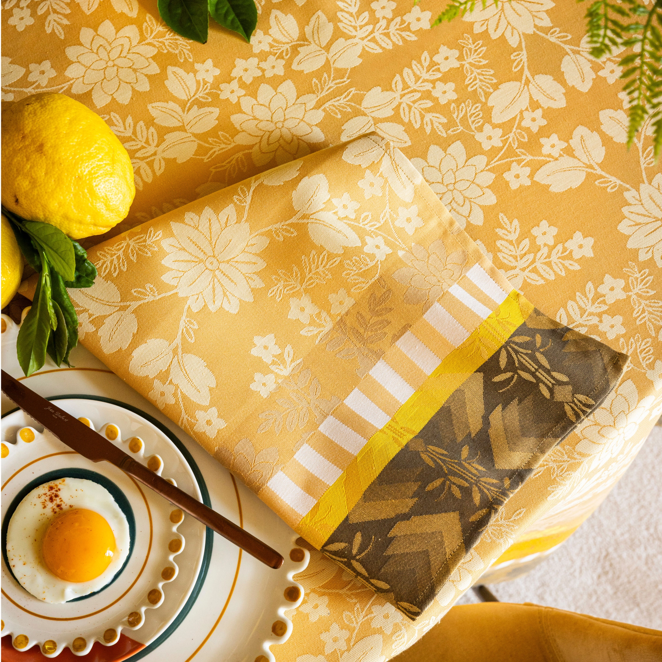 - Bawełniana serwetka 50 x 50 cm w kolorze żółtym z kolekcji Gipsy od Le Jacquard Francais.