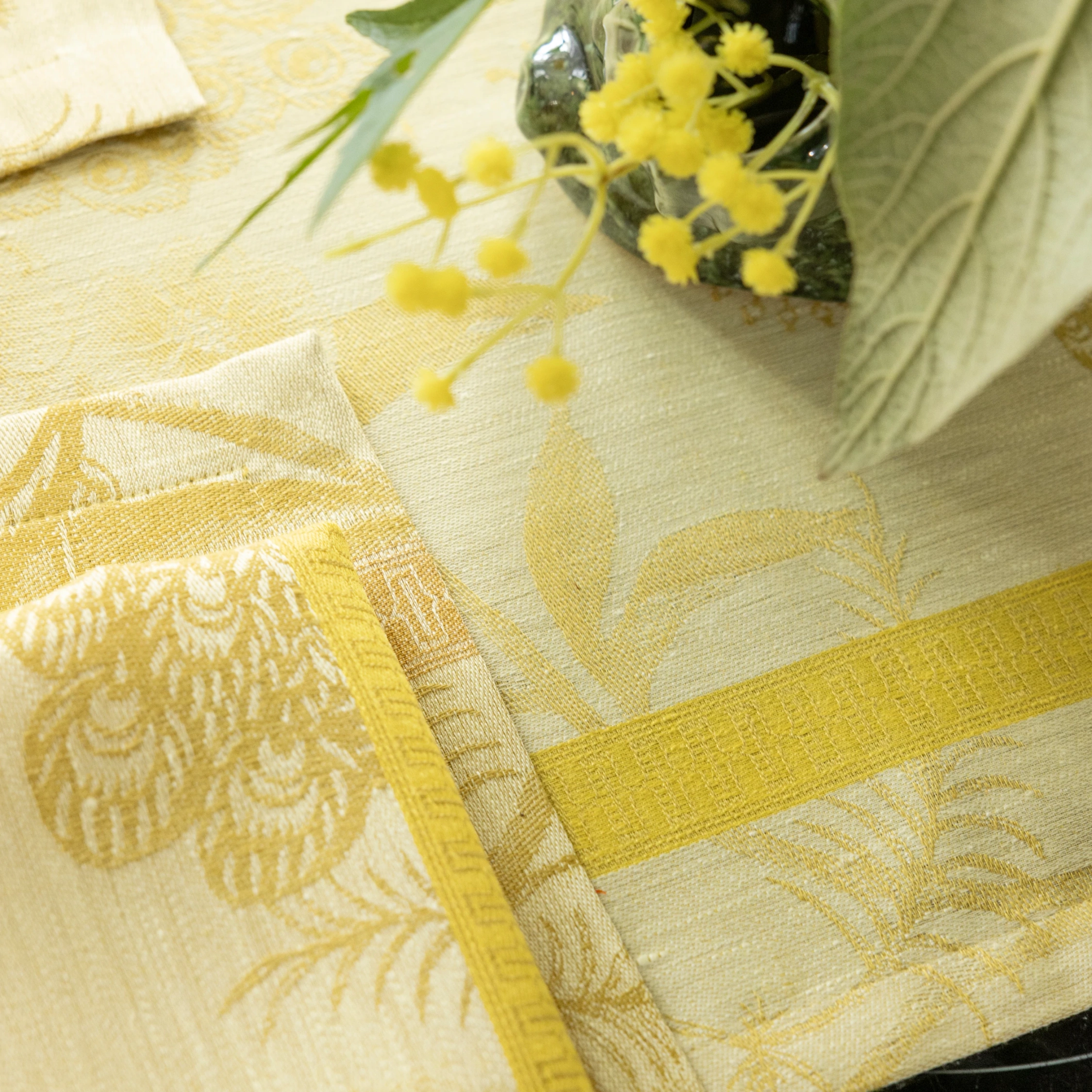 • Lniana serwetka stołowa 55 x 55 cm w kolorze żółtym z kolekcji À l'orangerie od Le Jacquard Francais.