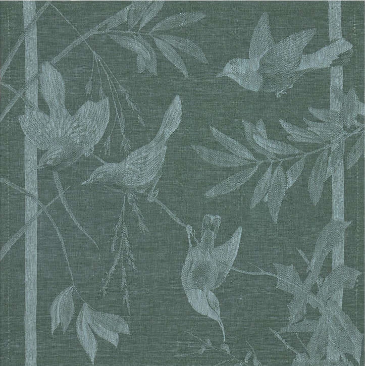Kolekcja Voliere to wyrafinowane i harmonijne połączenie motywu roślinności i ptaków. Kolekcja powstała w wyniku współpracy Le Jacquard Francais z QUINSAI, co stanowi swojego rodzaju połączenie między pięknym wnętrzem a zastawą stołu. Owocem tej współpracy jest właśnie ta elegancka, wyrafinowana i stworzona z dbałością o każdy szczegół kolekcja Voliere - dostępna w 3 różnych odcieniach. Do produkcji użyto specjalnych długich i mocnych lnianych włókien o gramaturze 205 g/m².