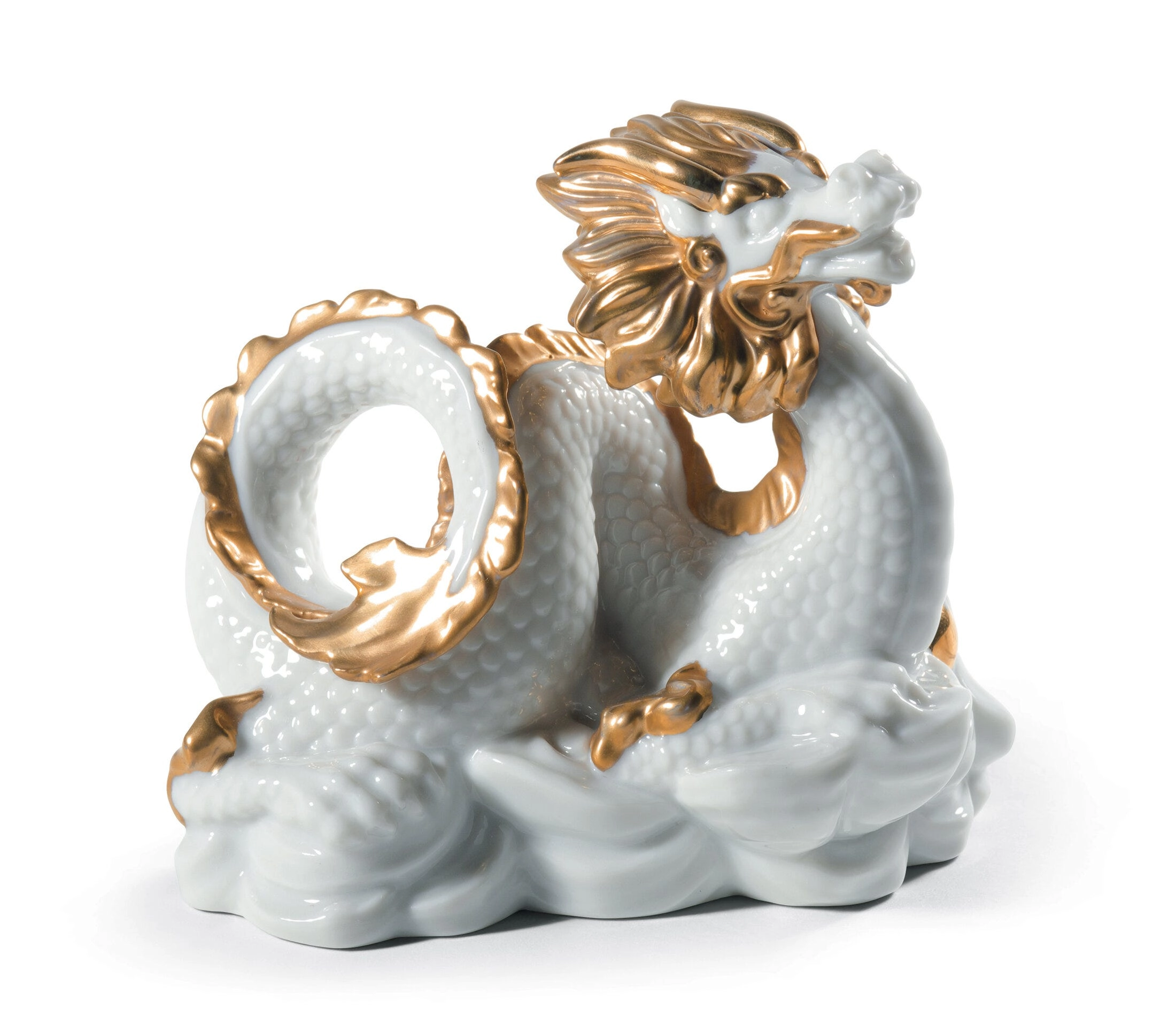 - Rzeźba smoka z białej porcelany ze złotym połyskiem z kolekcji Chinese Zodiac.