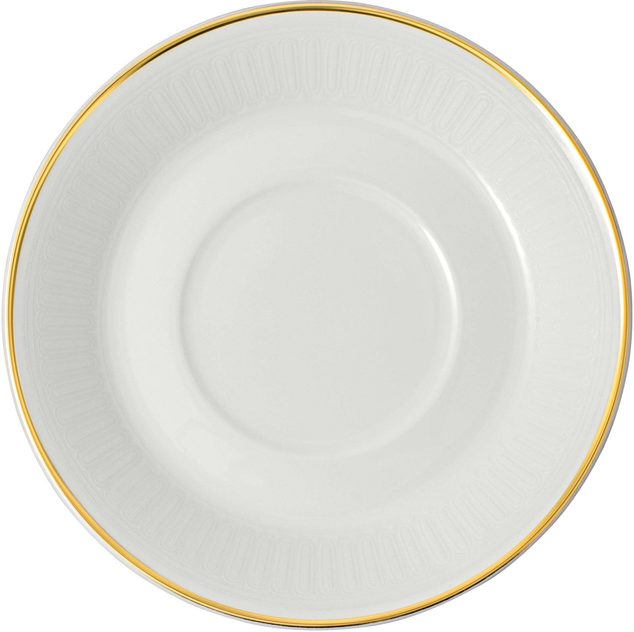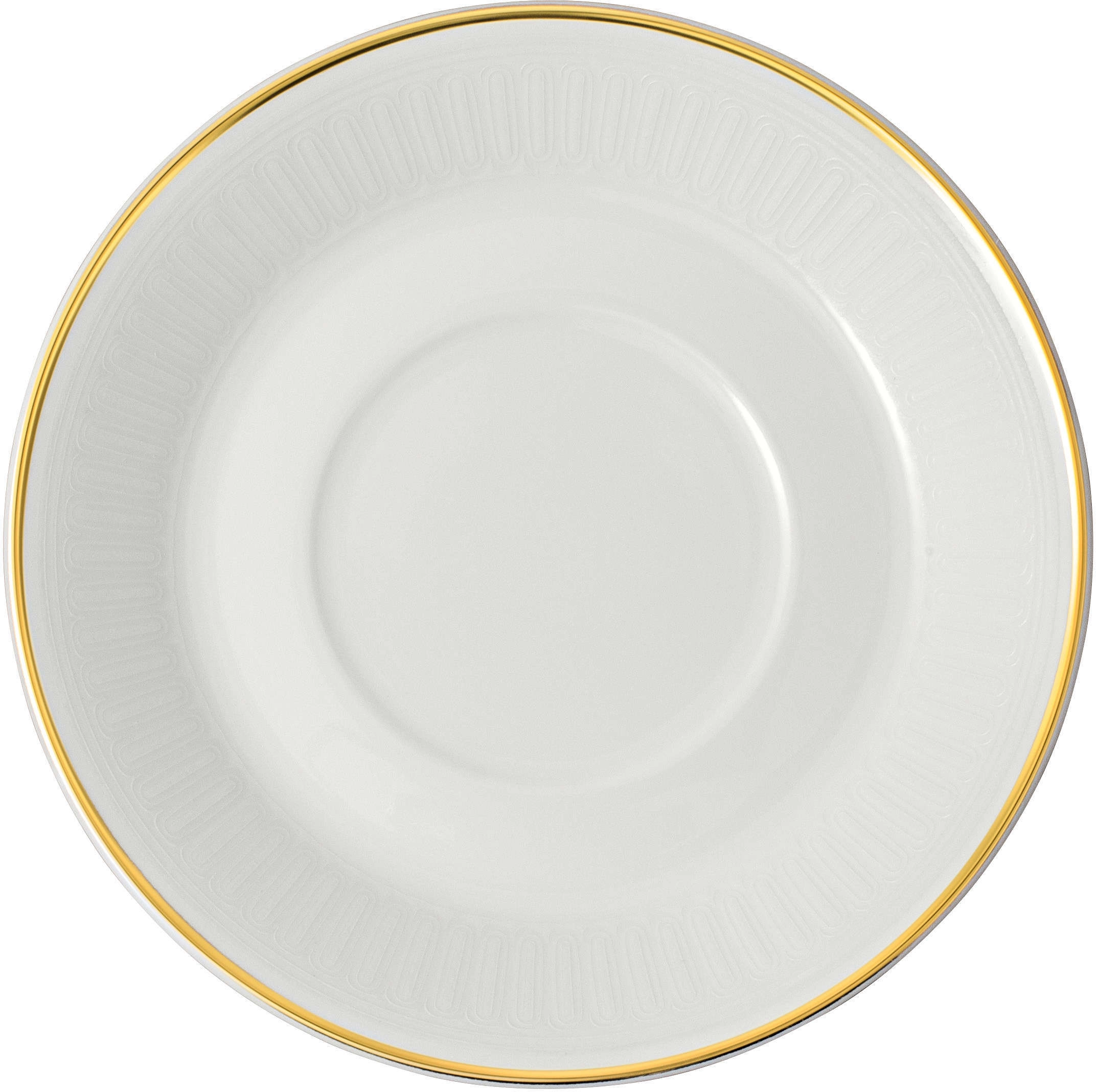 Spodek do filiżanki do espresso z kolekcji Chateau Septfontaines. Kolekcja Chateau Septfontaines to najnowsza odsłona luksusowej serii Signature sygnowanej przez Villeroy&Boch. Nazwa nawiązuje do historycznej rezydencji wzniesionej przez braci Boch pod koniec XVII wieku. Podczas tworzenia tej kolekcji zainspirowano się ówcześnie królującym stylem klasycznym w nowej, subtelnej odsłonie w stylu art déco. Całość to efektowna gra między błyszczącą powierzchnią porcelany, matowym zdobieniem zaprojektowanym przez samego Vileroy&Boch oraz 20-karatowym złotem znajdującym się na brzegach. Połączenie wysokiej jakości porcelany oraz najnowszych technik dekorowania sprawia, że całość jest niezwykle efektowna, czarująca, a jednocześnie nadająca się do codziennego użytku - doskonała dla koneserów porcelany na najwyższym poziomie.