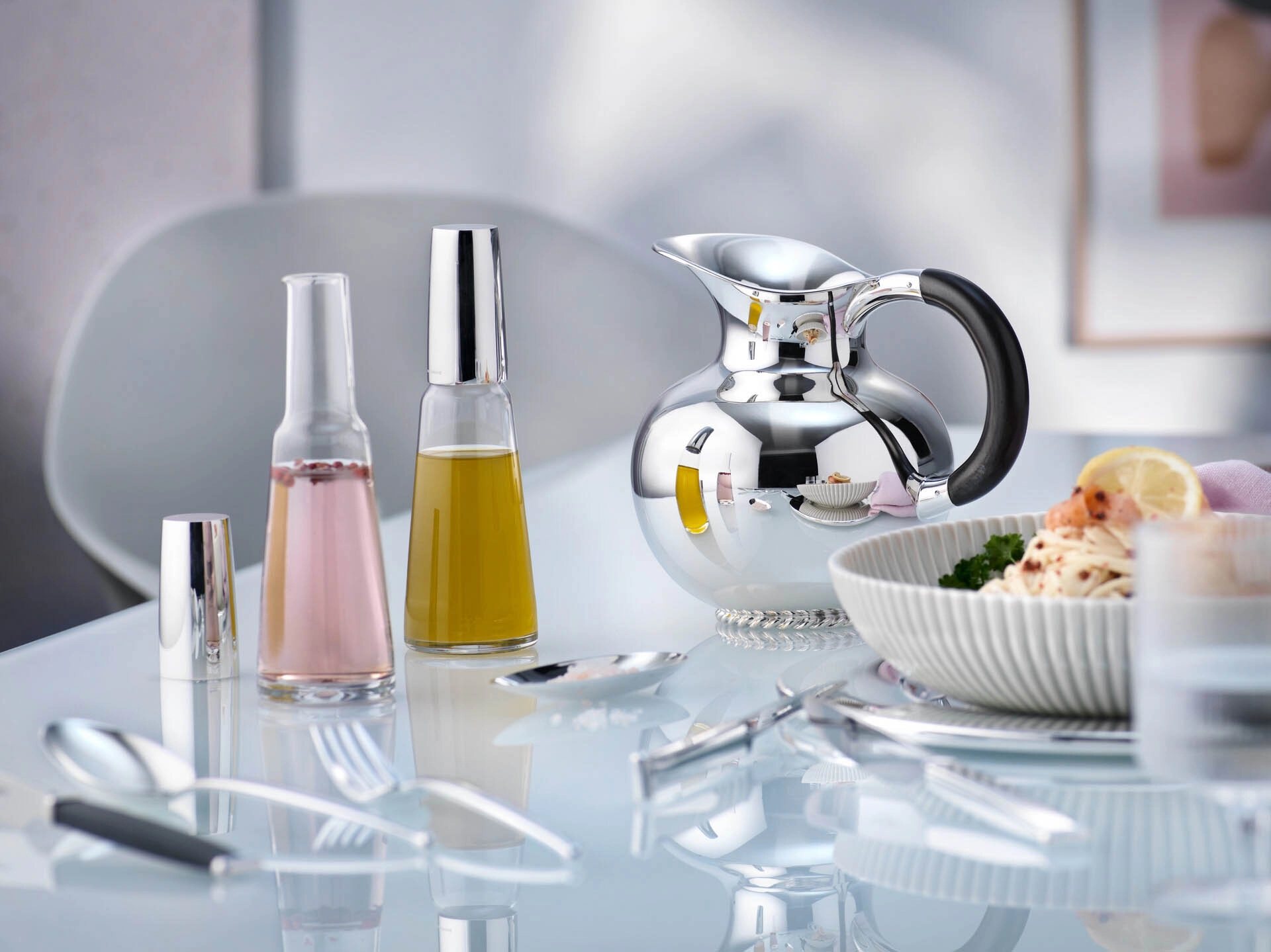 Srebrna butelka na oliwę i ocet