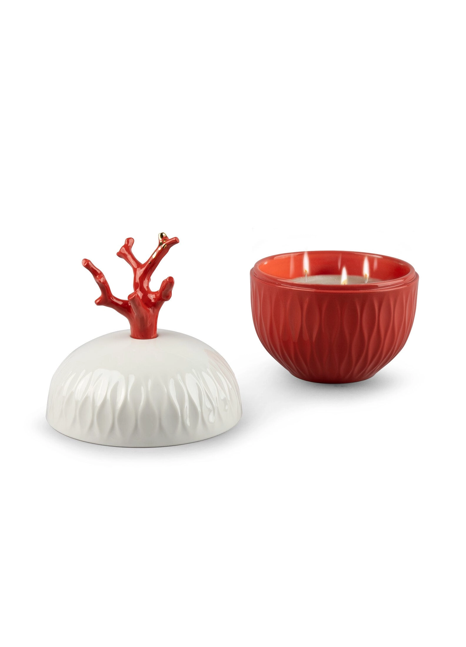 - Świeca z kolekcji Coral inspirowana rafą koralową z akcentami czerwieni i złotego połysku.