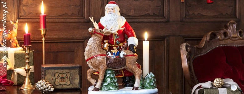 Świecznik św. Mikołaj i Jeleń z kolekcji Christmas Toys Memory. Dzięki niej wprowadzisz ciepłą i przytulną atmosferę do swojego domu. Kolekcja Memory Toys Christmas to seria niezwykłych i zachwycających figurek, które są ręcznie malowane oraz wzbogacone efektami świetlnymi i muzycznymi. Pozwalają na przywołanie dziecięcych wspomnień czy wyjątkowych jarmarków bożonarodzeniowych. Ukazano w niej typowe specjały, pierniki oraz figurki i pozytywki z motywem choinki czy elementów związanych ze św. Mikołajem. Nowy rok 2019 to trzy nowe figurki św. Mikołaja oraz trójwymiarowa choinka z 24 ozdobami.