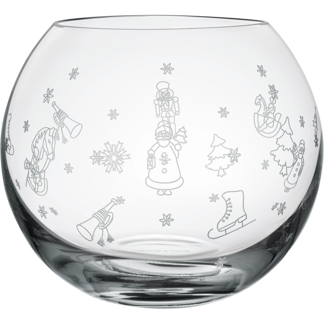Świecznik typu tealight wykonany ze szkła kryształowego z kolekcji Toy's Delight od Villeroy & Boch. Doskonale sprawdzi się także do dekoracji bożonarodzeniowego stołu. Przezroczyste szkło kryształowe zostało ozdobione klasycznymi motywami serii Toy's Delighy, czyli zabawkami, mikołajem, motywami choinki. Są niezbędnym elementem nie tylko zastawy stołowej, ale pięknie uzupełniają także efektowne szkło z tej serii czy nowy dzbanek.