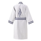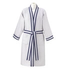Bawełniany szlafrok kąpielowy z kolekcji Bath Club Dark Blue. Specjalna struktura miodu sprawia, że jest niezwykle chłonny, miękki i szybko wysycha. W wyjątkowy sposób otuli Twoje ciało po kąpieli. Kolekcja Bath Club zachęca do chwili relaksu i odpoczynku z najwyższą jakością. Stworzona we współpracy z architektem Jean-Michel Wilmotte, który przeniósł linie swojego szkicownika na materiał - splot zastosowany w tej serii przypomina właśnie szkicownik o prostych, czystych liniach z współczesnym akcentem.