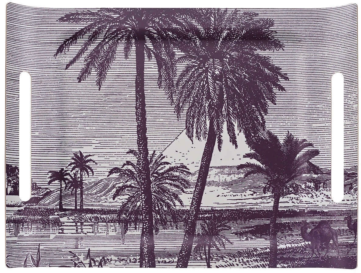 Drewniana taca z kolekcji Croisiere Sur Le Nil. Nowa kolekcja "Croisière Sur Le Nil" to ukłon w stronę egipskich malarzy i ich orientalnego stylu. Inspirowane pustynnymi krajobrazami produkty stają się nie tylko niezwykle elegancką ale także bardzo odważną i oryginalną kreacją na Twoim stole. Żywe i mocne kolory, które pozwolą cieszyć się chwilą i wprowadzić barwę do wnętrza!
