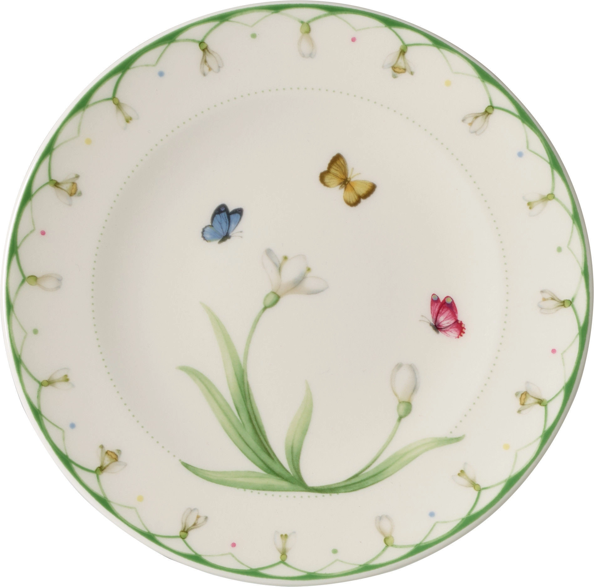 Talerz B&B z kolekcji Villeroy & Boch Colourful Spring. Kolekcja Colourful Spring to połączenie wiosennych motywów z wysokogatunkową porcelaną premium. Przebiśniegi i motyle to symbole zwiastujące nadchodzącą wiosnę, a razem z nią piękne, słoneczne dni. Zachwyci Ciebie i Twoich gości zarówno podczas wielkanocnego śniadania, jak i przez cały rok. Połącz elementy ze sobą różne elementy i stwórz własną, oryginalną dekorację. Doskonale będą się prezentować także w połączeniu z innymi kolekcjami, np. Colourful Life. Wprowadź lekkość i świeżość na swój stół i do swojego domu z porcelaną marki Villeroy&Boch!