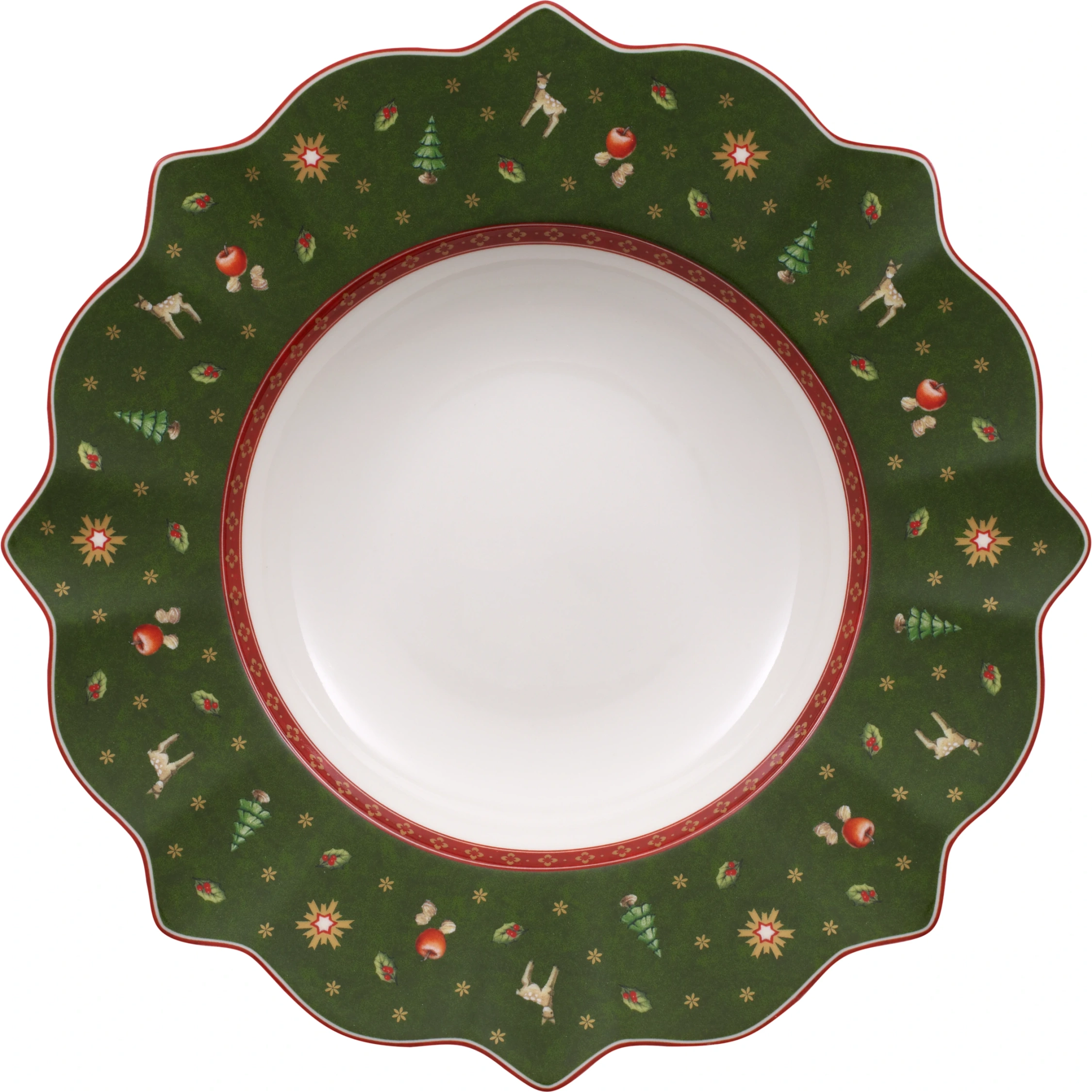 Talerz głęboki zielony o średnicy 26 cm z kolekcji Toy's Delight od Villeroy & Boch. Zastawa stołowa z tej kolekcji to zaproszenie do magicznego świata Świąt Bożego Narodzenia! Każdy element zdobią nostalgiczne, bajkowe motywy, które przeniosą Cię w czasie do radosnych, beztroskich chwil. Porcelana została udekorowana uroczymi świątecznymi symbolami, takimi jak Mikołaj, lokomotywa, pluszowy miś czy skarpeta na prezenty. Klasyczne, bożonarodzeniowe barwy – czerwień, zieleń i biel – w połączeniu z dopracowanymi detalami tworzą niepowtarzalny klimat, który wniesie do Twojego domu ciepło i wyjątkową atmosferę świąt.