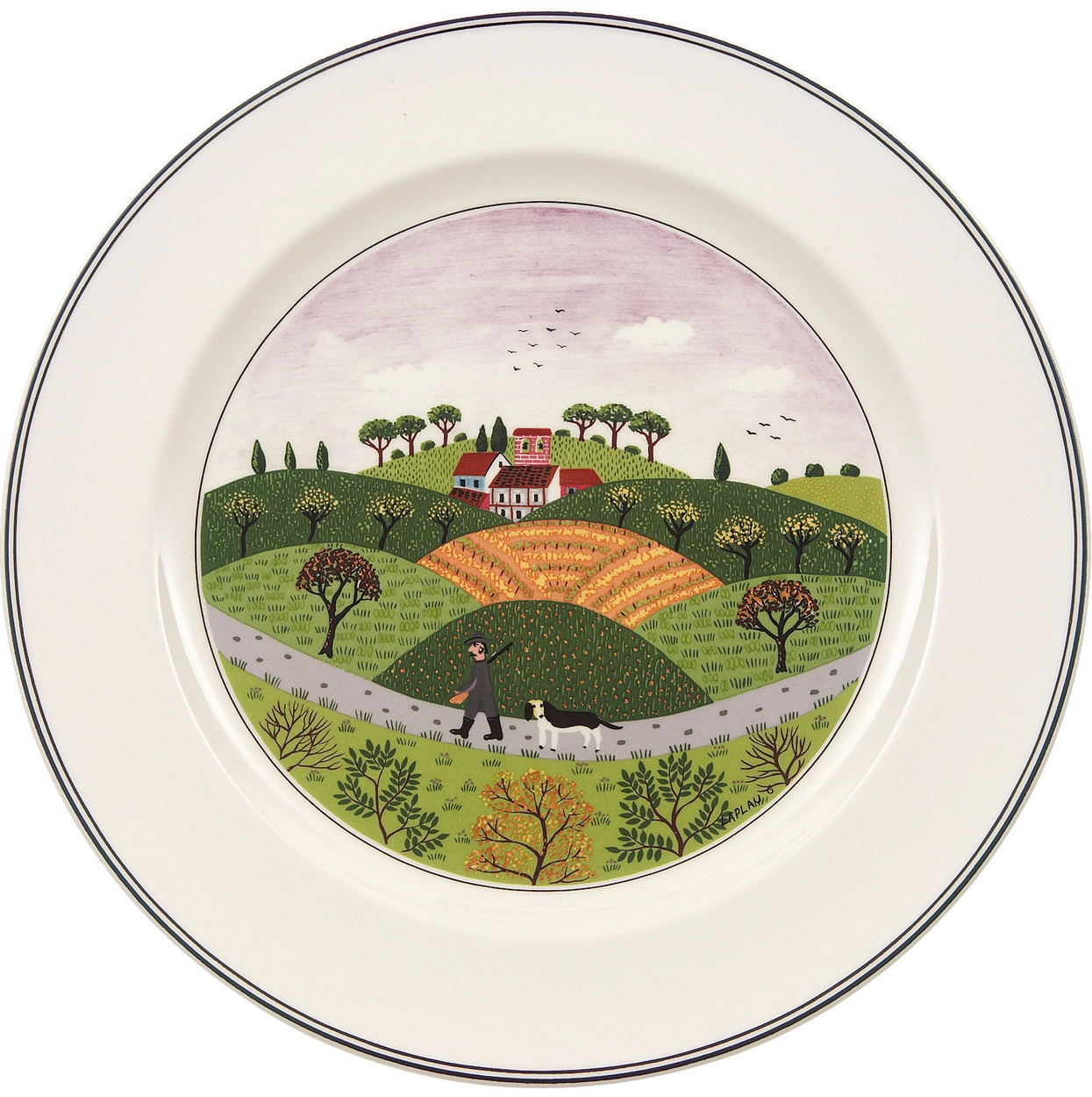Talerz obiadowy Huntsman z kolekcji Design Naif. Kolekcja Design Naif - prawdziwy unikat wśród porcelany premium. Każdy element tej serii, starannie wykonany z najwyższą dbałością o detale, emanuje niepowtarzalnym urokiem. Oryginalne dekoracje krajobrazowe, stworzone przez renomowanego korsykańskiego artystę Gérarda Laplau, wprowadzają do Twojego wnętrza nutę sztuki naiwnej, która zyskała popularność na całym świecie. Radosne i pełne kolorów sceny z wiejskiego życia ozdabiają białą porcelanę o rustykalnych kształtach. Przygotuj się na wyjątkową podróż dzięki fantazyjnie zdobionej porcelanie, gdzie każdy posiłek staje się wyjątkowym doświadczeniem estetycznym i sensorycznym.