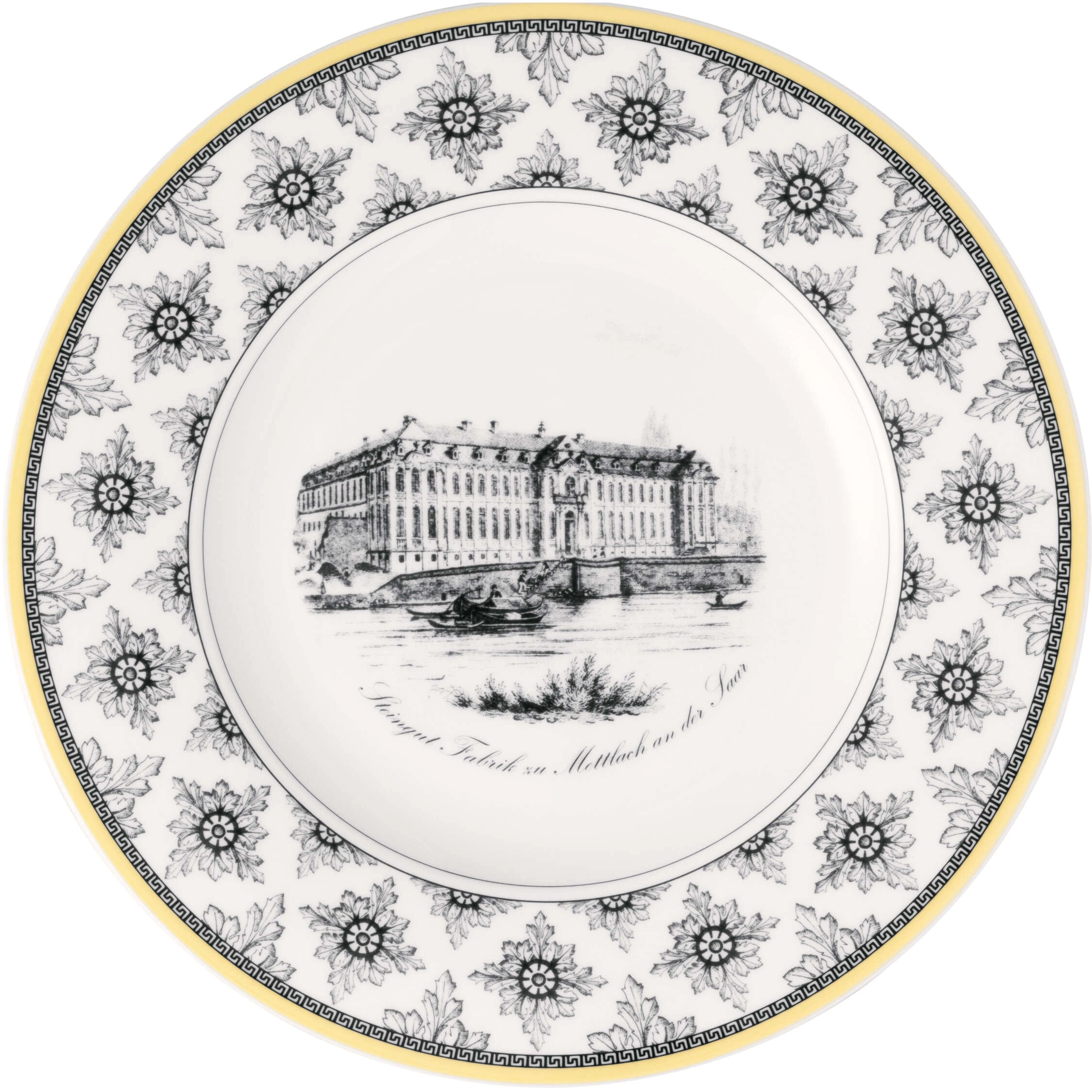 Talerz obiadowy z wyjątkowej serii Audun, inspirowanej miedziorytami ukazującymi malownicze obrazy.