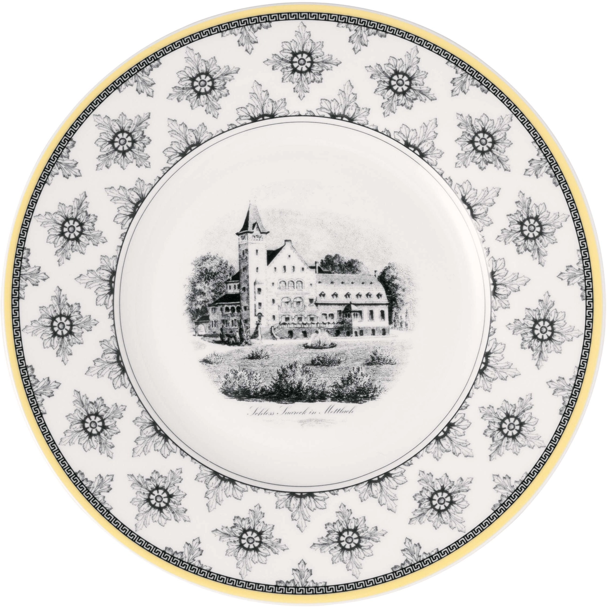 Talerz sałatkowy z wyjątkowej serii Audun, inspirowanej miedziorytami ukazującymi malownicze obrazy. Na powierzchni naczynia przedstawiony jest urokliwy zamek Saareck w Mettlach, będący niegdyś rodzinną siedzibą rodu Boch. Dziś zamek ten pełni funkcję luksusowego pensjonatu, przyciągając gości z najdalszych zakątków świata.