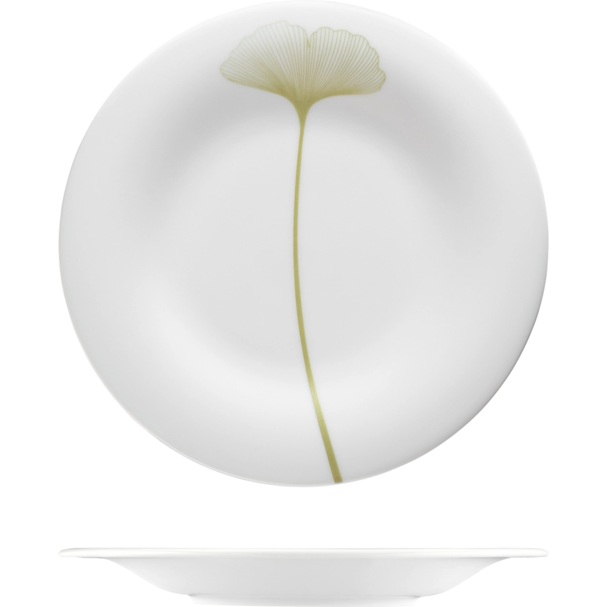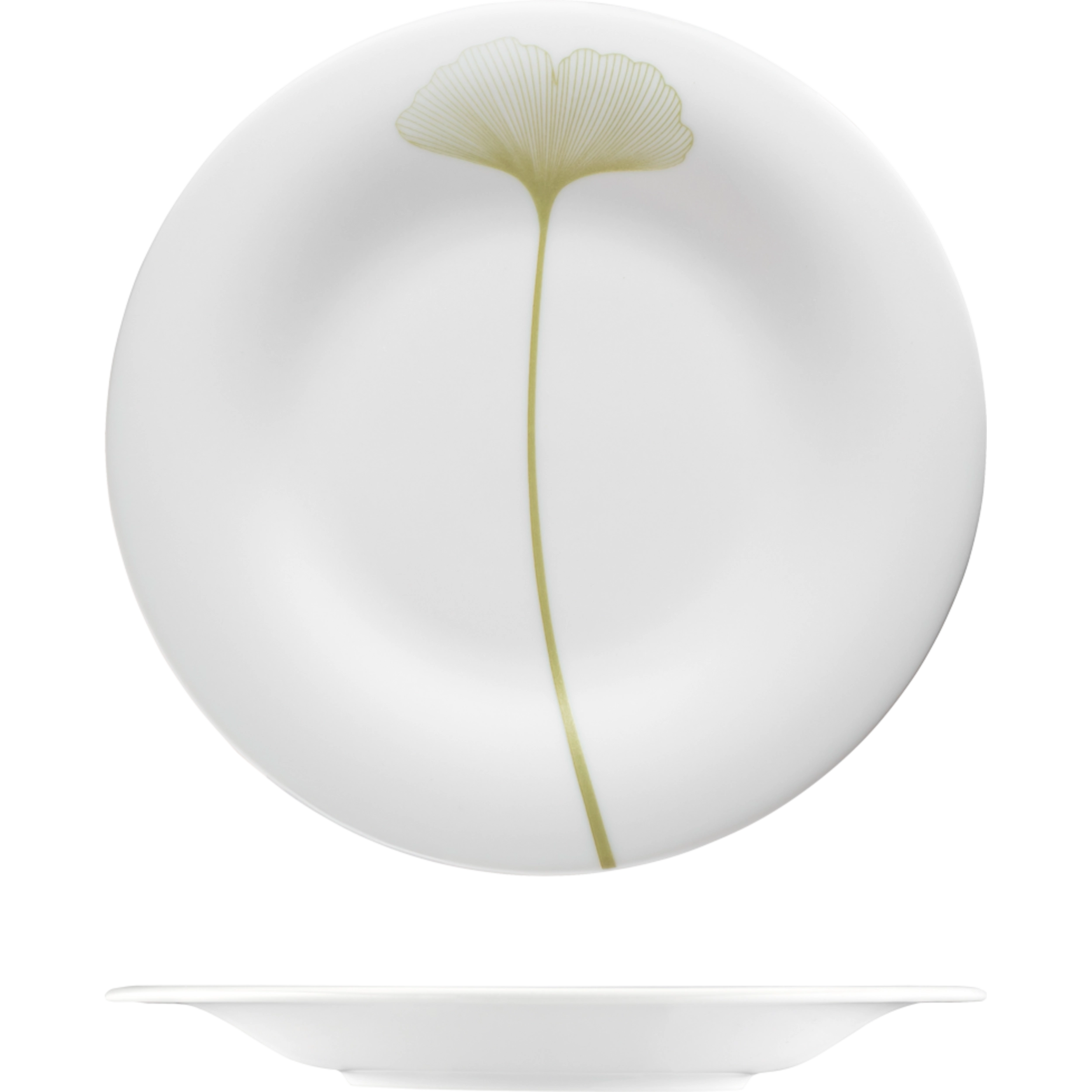 Talerzyk na piepczywo o średnicy 18cm z motywem liści miłorzębu z kolekcji FLUEN LIMINEA. FLUEN to nowa kolekcja zastawy stołowej stworzona przez Alfredo Häberli dla FÜRSTENBERG. Połączenie współczesnej elegancji i poetyckiej formy, która została nagrodzona German Design Award 2018. W tej zastawie poezja i precyzja płynnie się łączą, tworząc niezwykłą atmosferę na stole. Dekor LUMINEA wyróżnia się abstrakcyjnymi liśćmi miłorzębu, które w delikatnych odcieniach zieleni i szampana, z metalicznym perłowym akcentem, subtelnie podkreślają zakrzywiony design porcelany. Wyjątkowy charakter tego zestawu emanuje z lekko wypukłego, jedwabistego wyglądu dekoru LUMINEA.