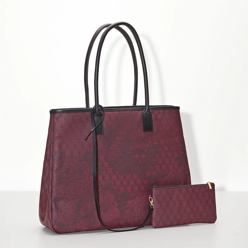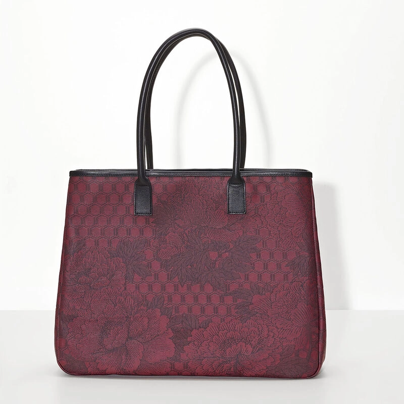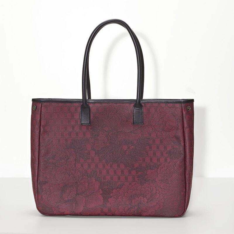 Materiałowa torebka na ramię ze skórzanymi dodatkami z kolekcji Pivoine Burgundy. Duża objętość i półsztywna konstrukcja doskonale sprawdzi się na co dzień! Miękkie uchwyty wykonane ze skóry z ręcznie malowanymi krawędziami zapewniają wygodę przenoszenia, nawet ciężkich rzeczy na ramieniu w bezpieczny sposób. Torba posiada wyjmowaną saszetkę na skórzanym pasku oraz zamek. Została wyposażona w zatrzaski, które umożliwiają regulację torebki w zależności od potrzeb. Wierzchnia warstwa jest powlekana akrylem, dzięki czemu można ją w łatwy sposób wyczyścić. W celu zachowania piękna należy chronić ją przed wilgocią, promieniowaniem UV oraz unikać kontaktu z perfumami. Zarówno projekt, jak i materiały użyte do jej wyprodukowania są w 100% europejskie. Na uwagę zasługuje także trwałość torebek Le Jacquard Francais, które nie blakną z czasem dzięki żakardowego tkaniu.