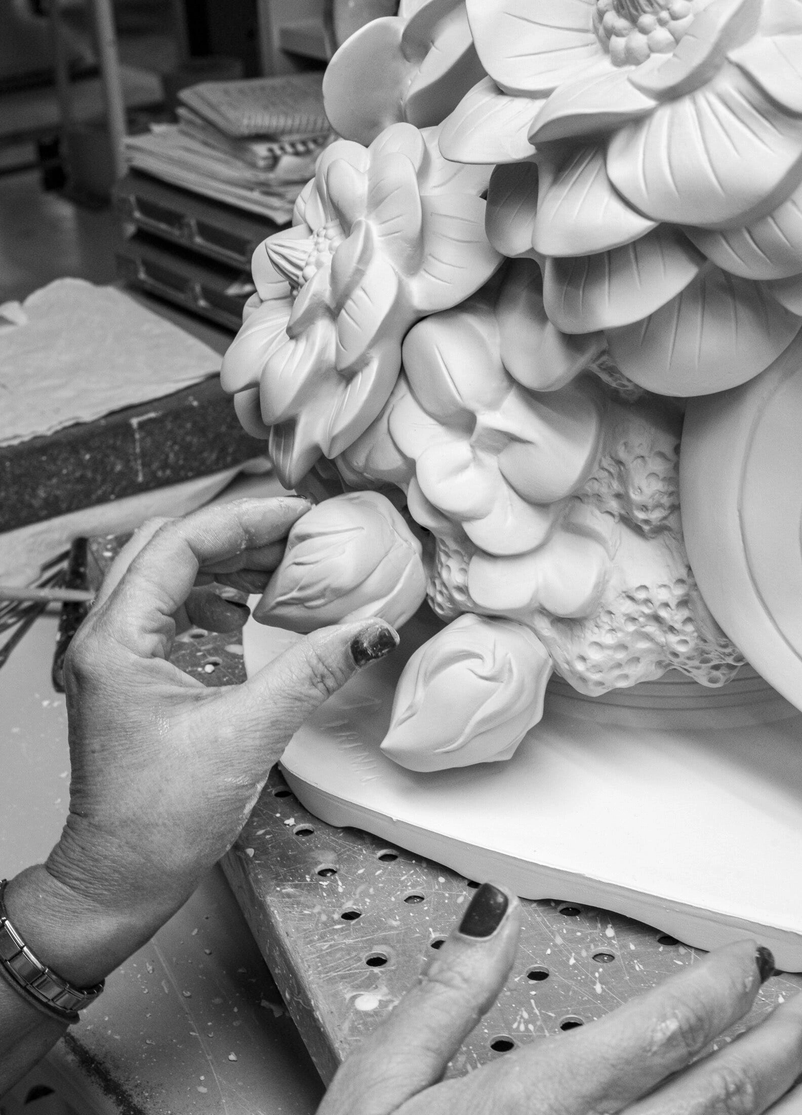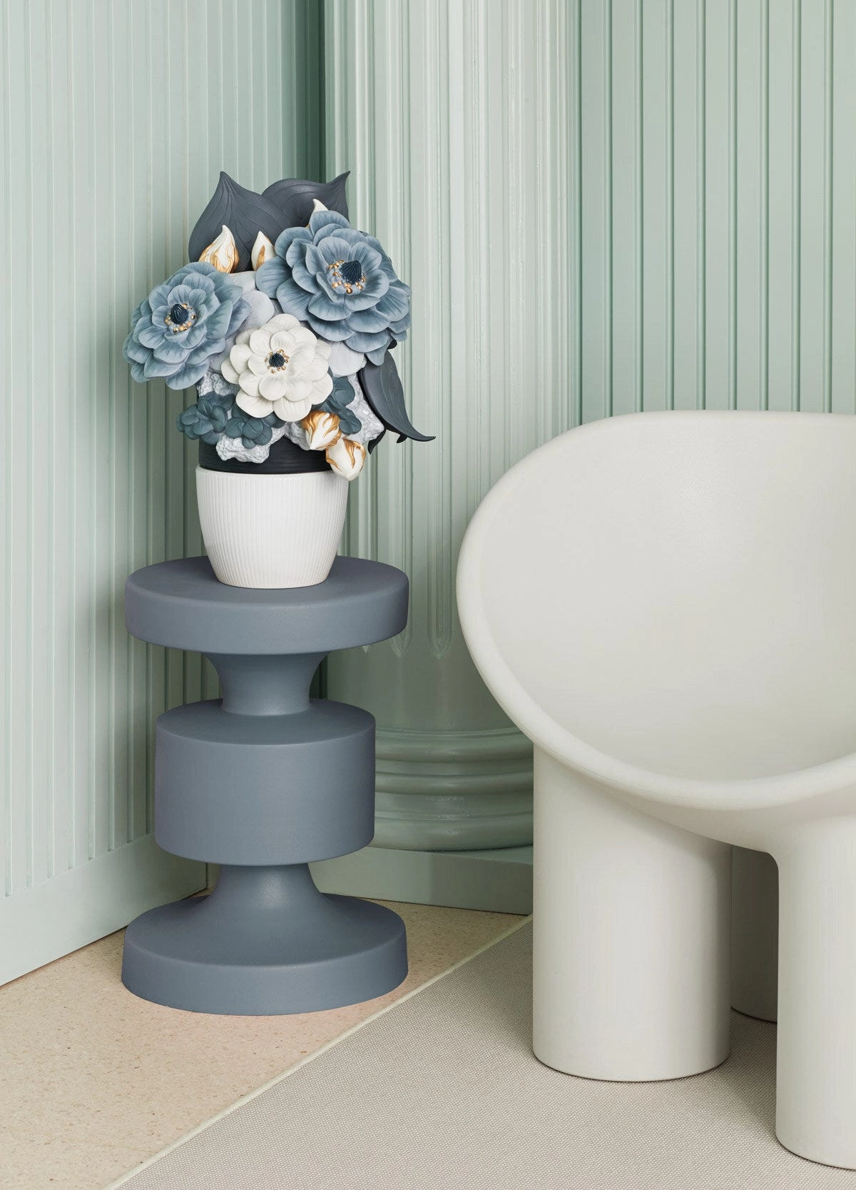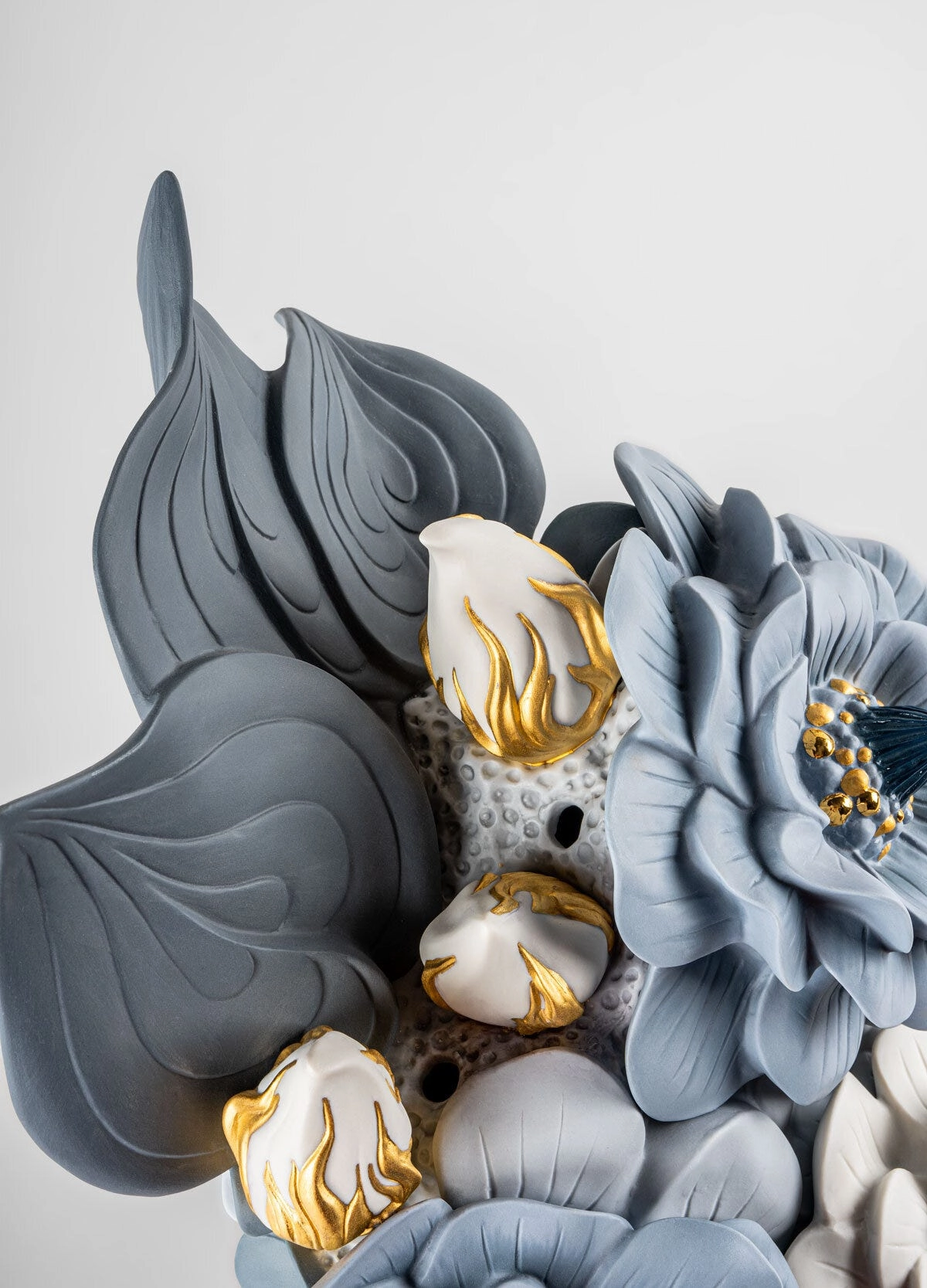 - Wazon z dekoracją kwiatową w niebieskich odcieniach ze złotym połyskiem.