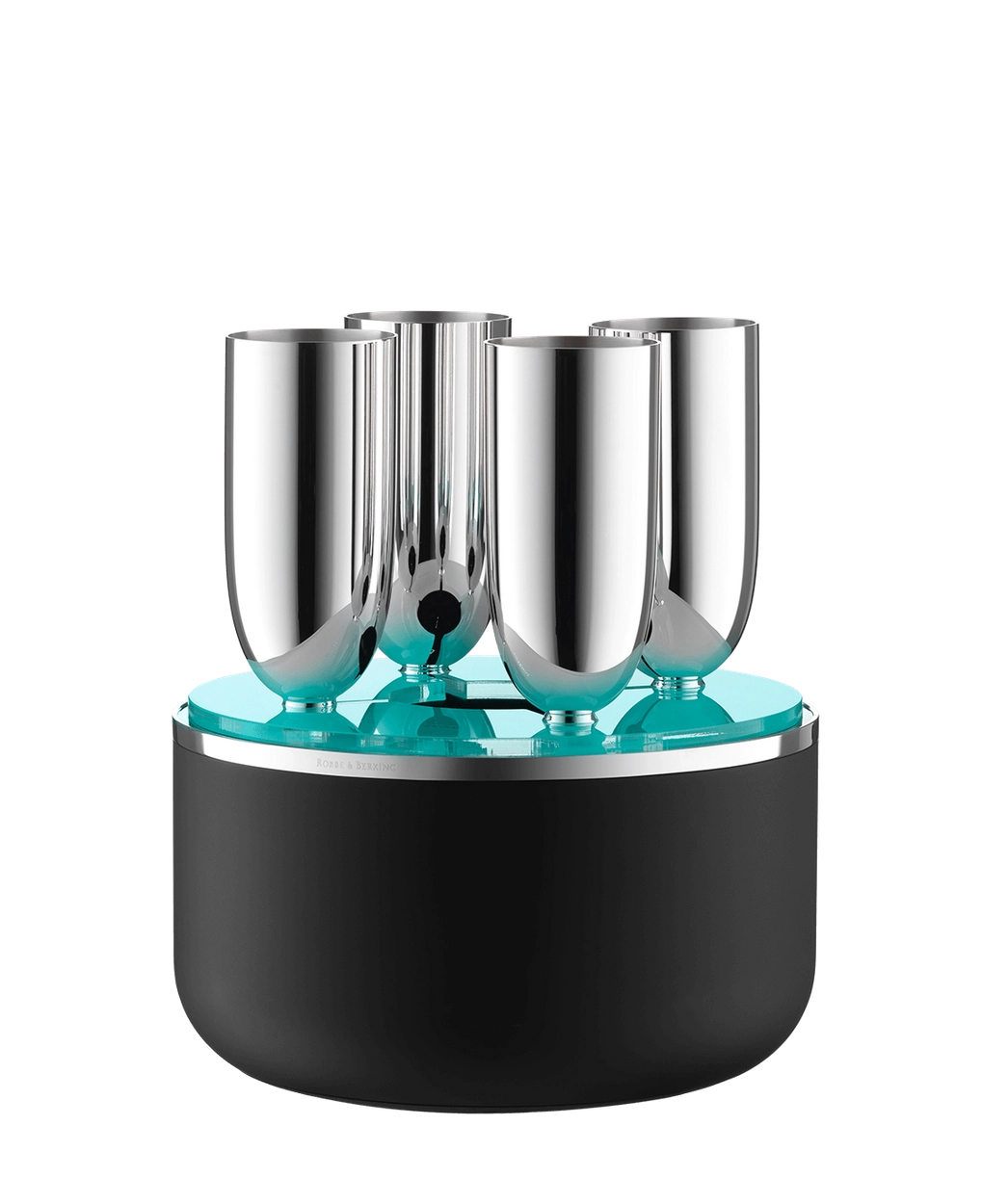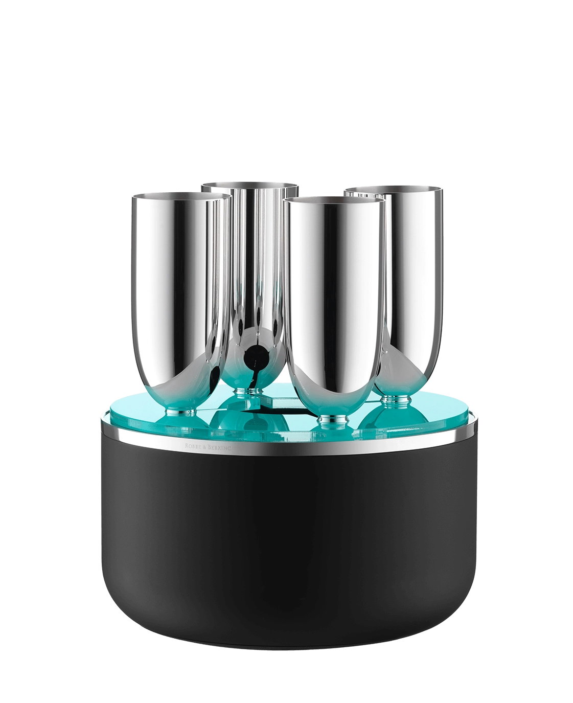 - Zestaw do szampana z 4 posrebrzanymi kieliszkami i pojemnikiem z kolekcji Dante 90