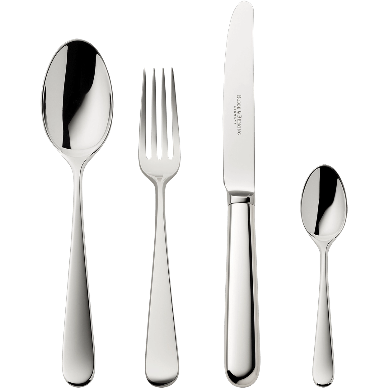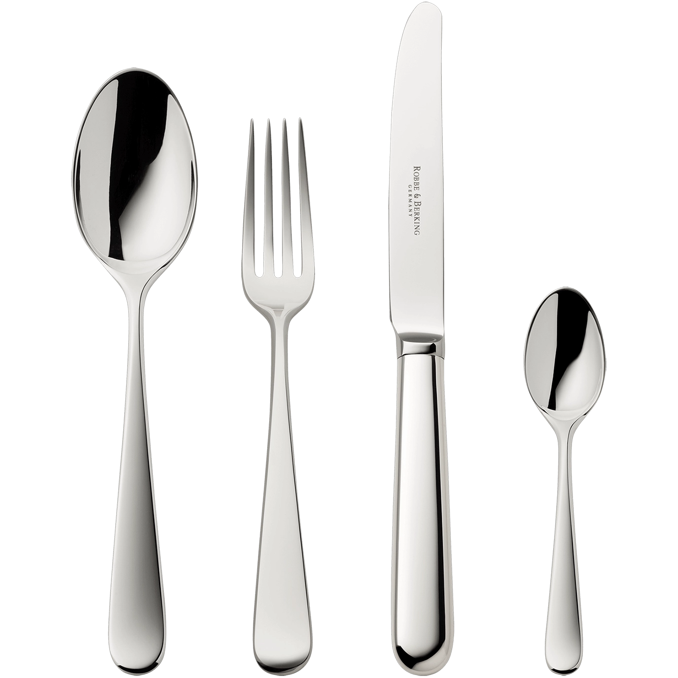 Zestaw posrebrzanych sztućców 24 el. dla 6 osób z kolekcji Dante 150. W jego skład wchodzi 6 x łyżka obiadowa (menu), 6 x widelec obiadowy (typu menu), 6 x nóż obiadowy (typu menu) i 6 x łyżeczka do kawy. Rozmiar menu gwarantuje większą wygodę użytkowania niż klasyczne sztućce stołowe. Kolekcja Dante niesie nową definicję prostoty i czystości. Jest prawdziwym arcydziełem o eleganckich proporcjach, które odzwierciedlają estetyczną doskonałość naszych czasów.