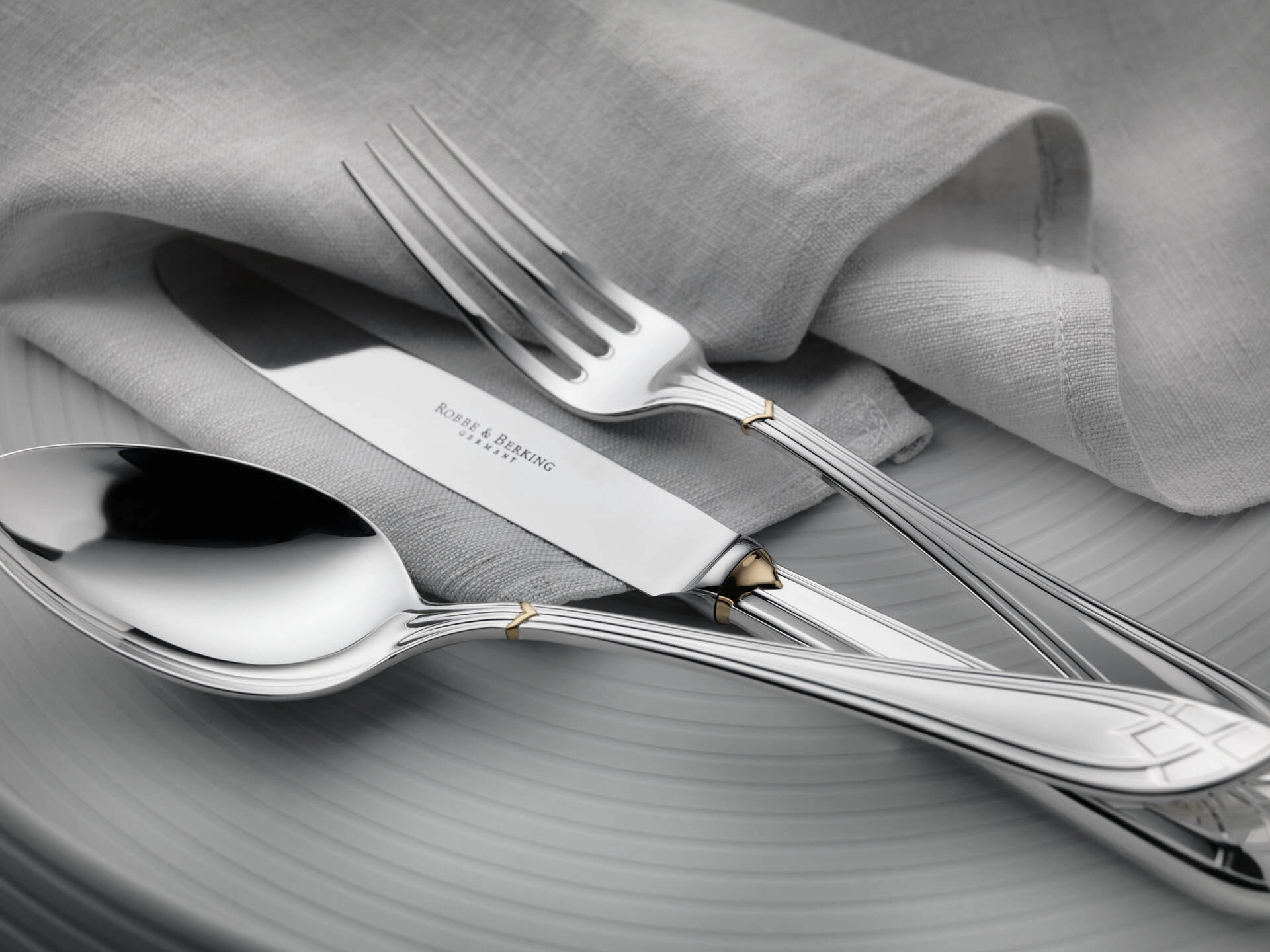 - Zestaw posrebrzanych sztućców 4 el. ze złoceniem z kolekcji Arcade Goldband 150