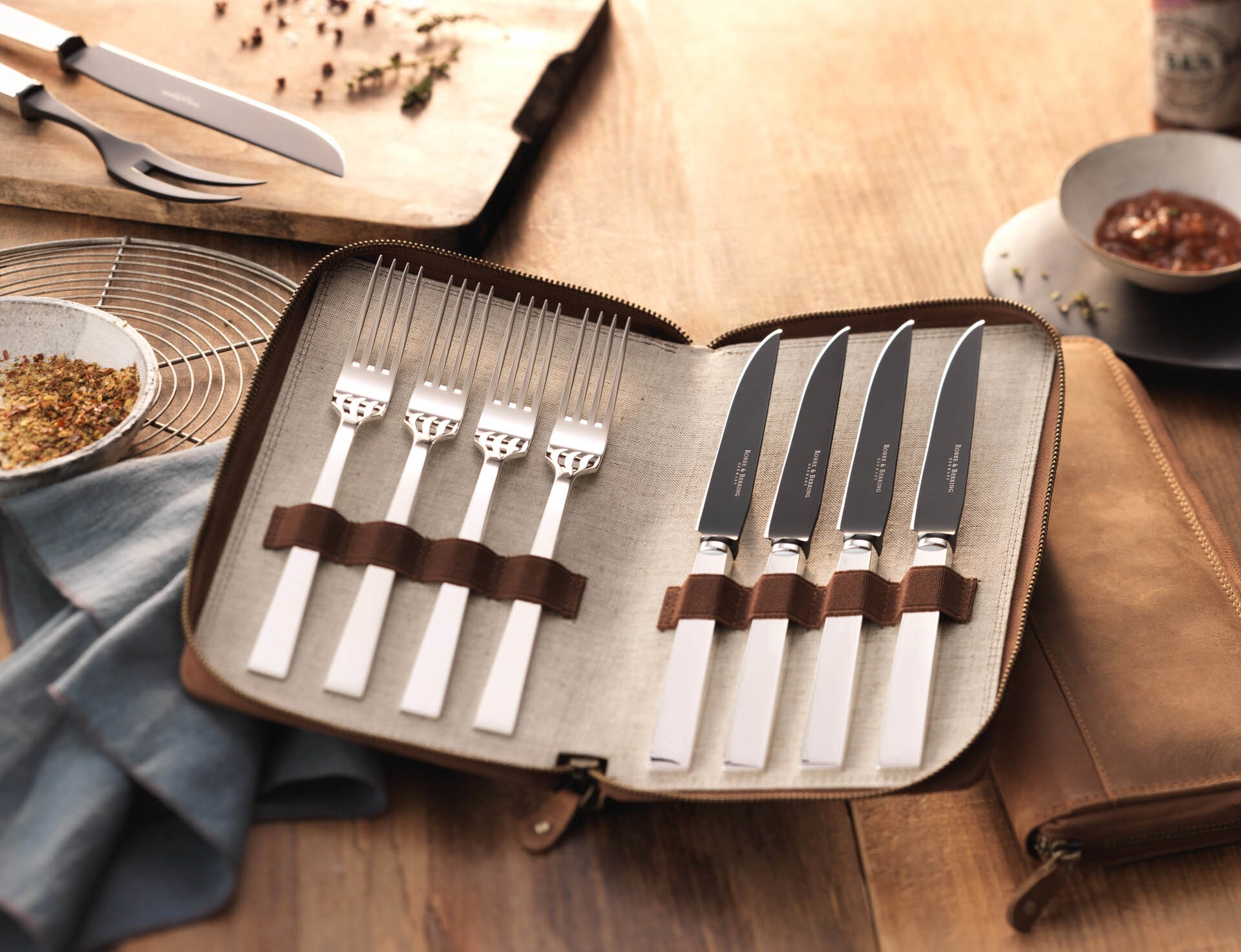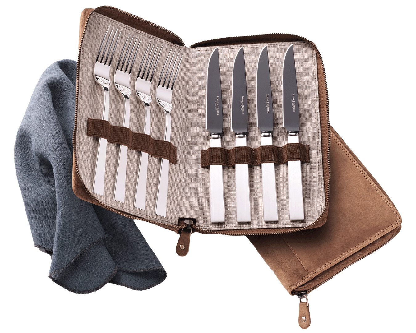 - Zestaw posrebrzanych sztućców do steków 8 el. z kolekcji Riva 150