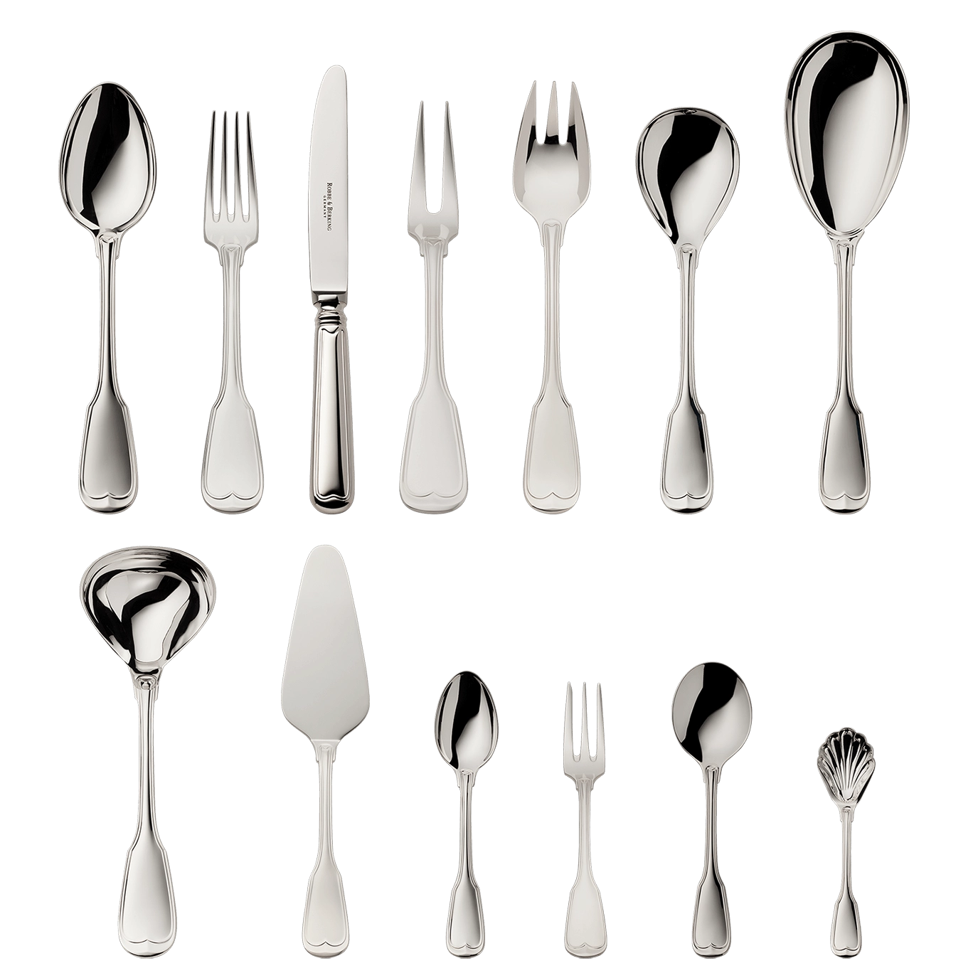 - Zestaw srebrnych sztućców 69 el. z kolekcji Alt-Faden 925