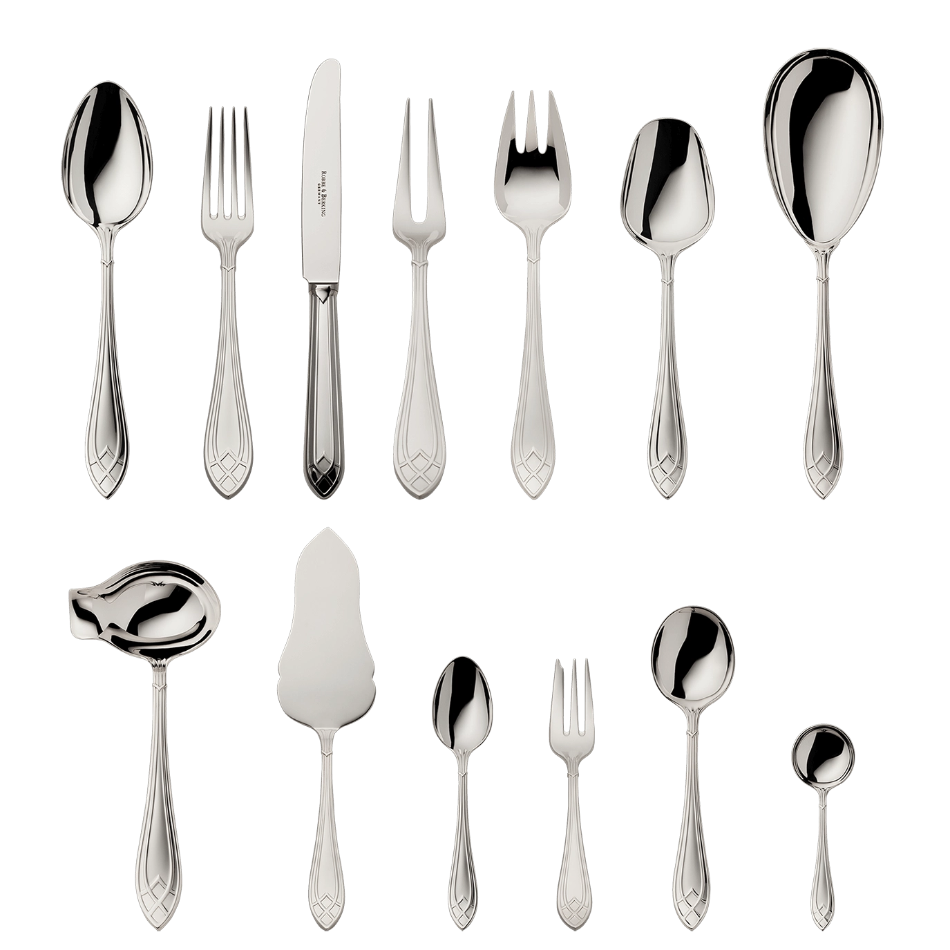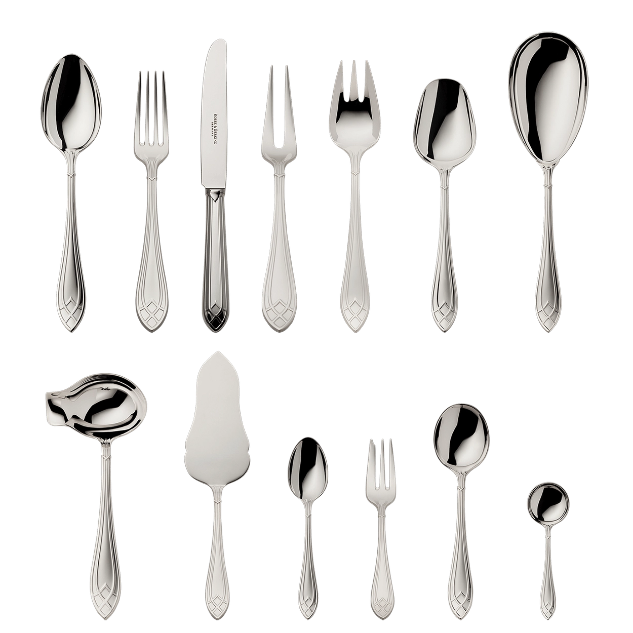 • Zestaw srebrnych sztućców 69 el. z kolekcji Arcade 925