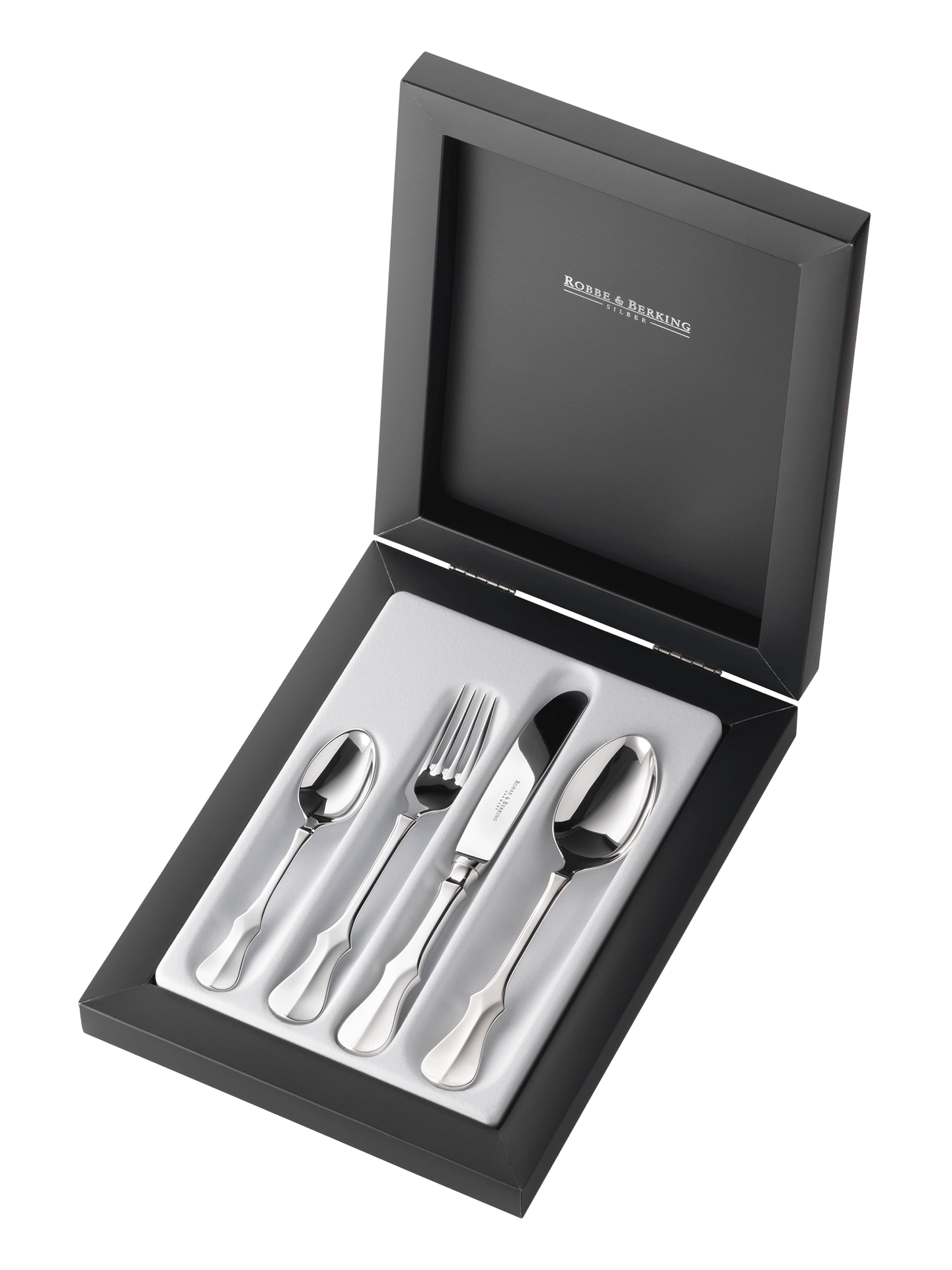 - Zestaw srebrnych sztućców dziecięcych 4 el. z kolekcji Alt-Kopenhagen 925