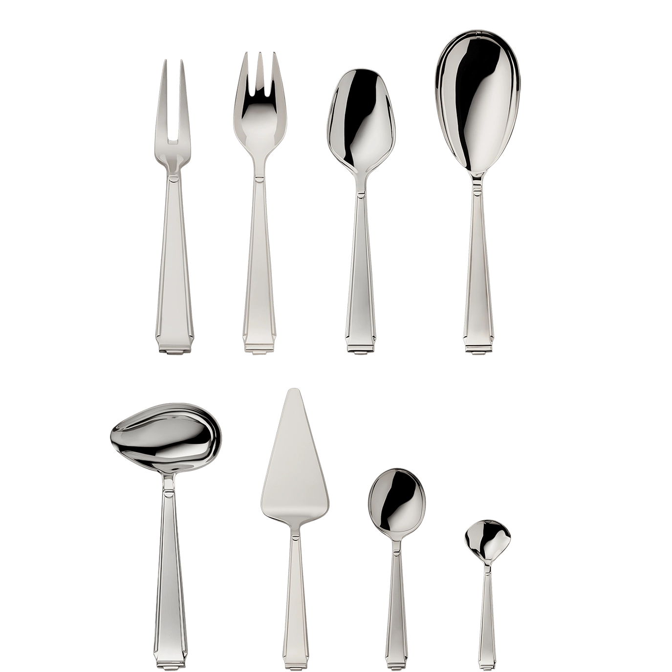- Zestaw srebrnych sztućców środka stołu 9 el. z kolekcji Art Deco 925